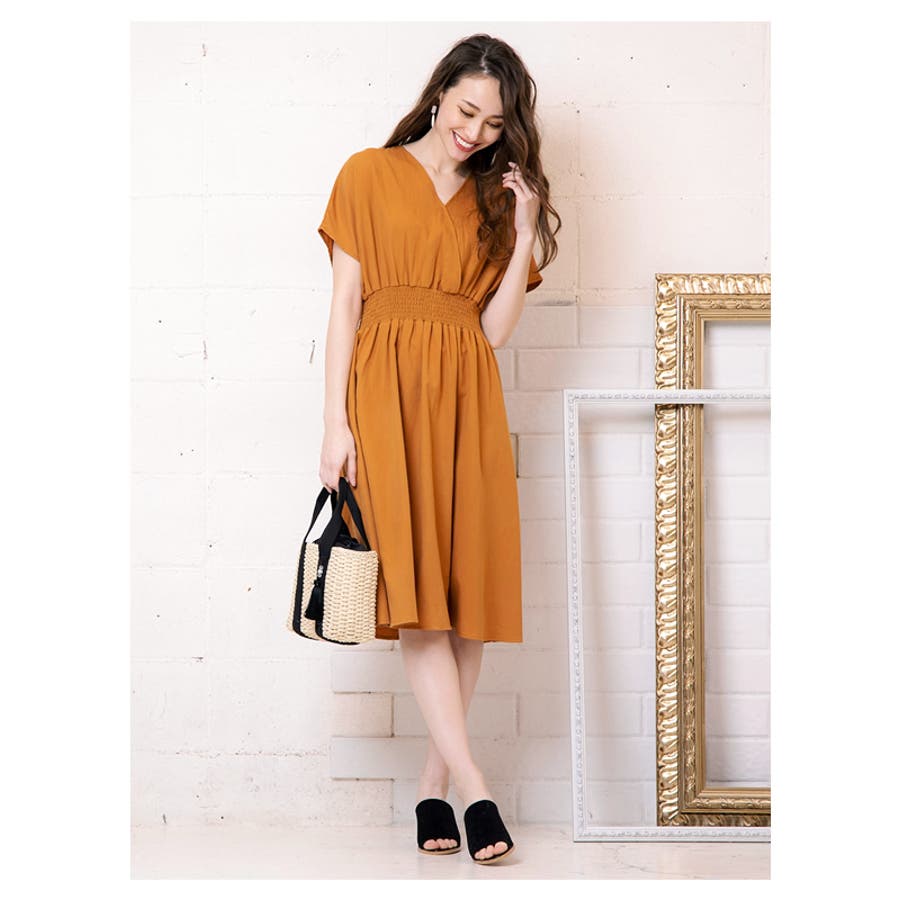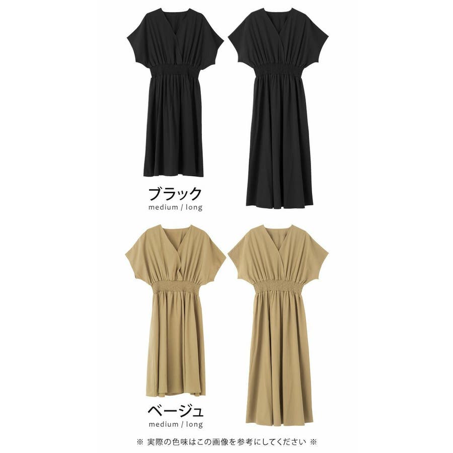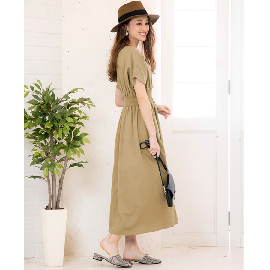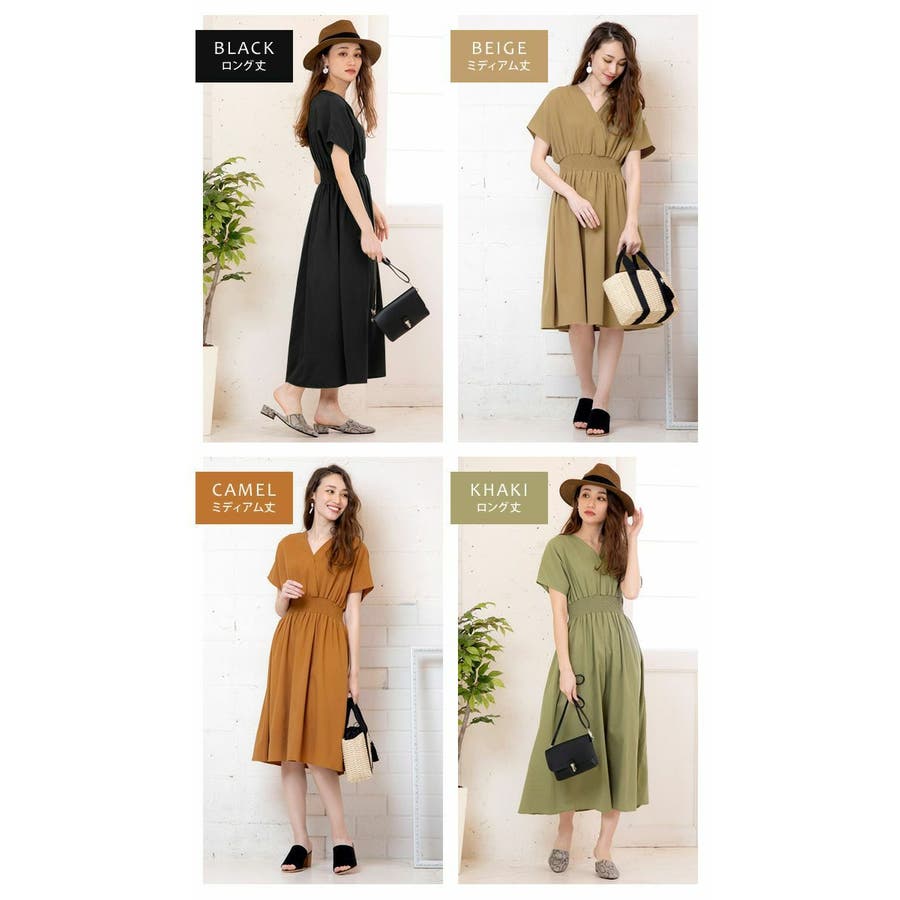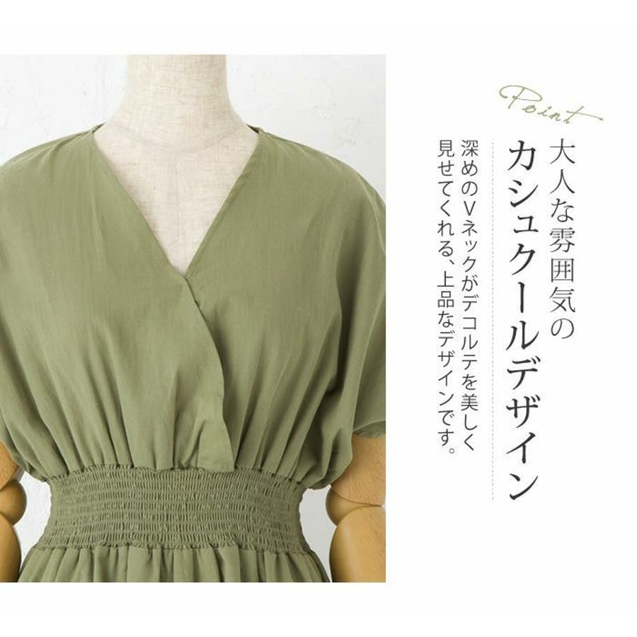 ワンピース ウエストゴム コットン100% Vネック ワンピ 半袖 ブラウジング リゾート アースカラー 大きいサイズ カシュクール デザイン 締め付けない ゆったり ミディアム ロング 春 夏 大人 かわいい 体型カバー 涼しい 授乳可能