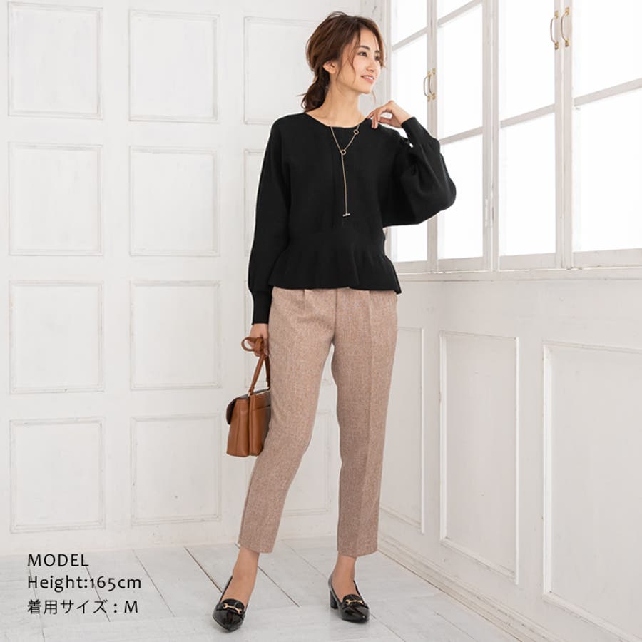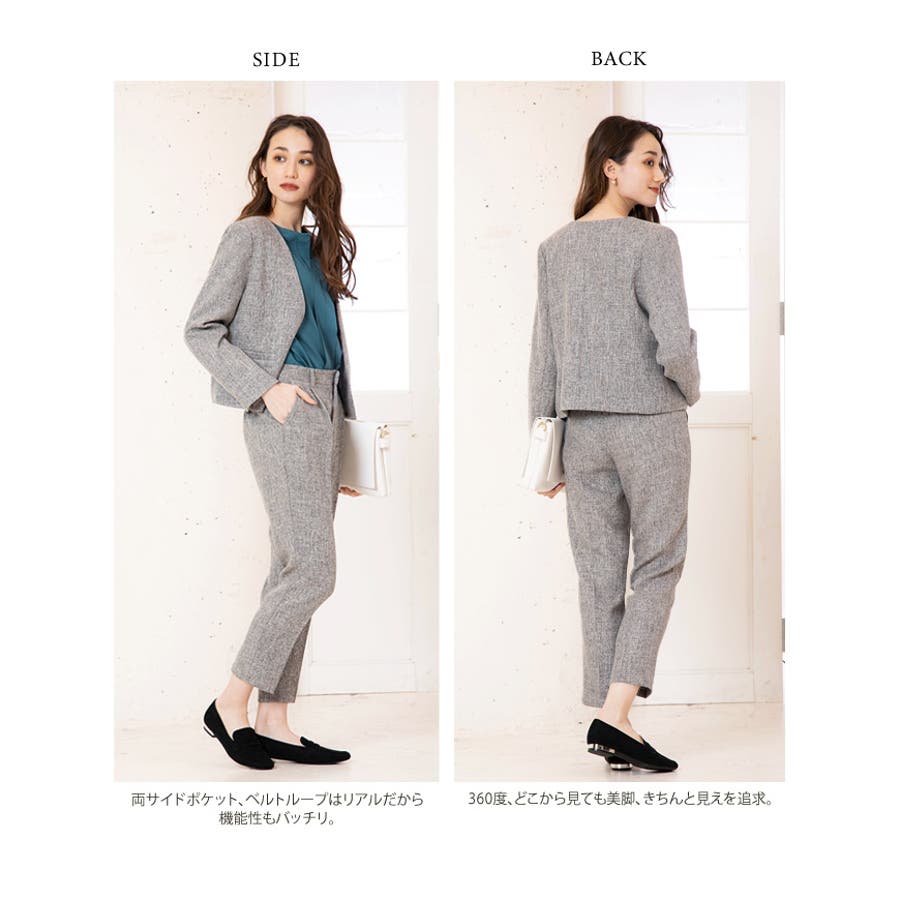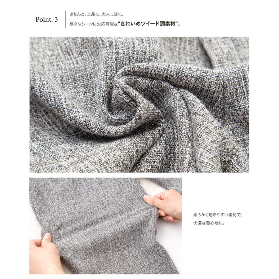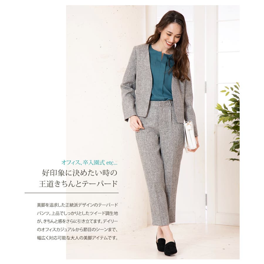 テーパードパンツ 美脚 センタープレス フロントタック ツイード調 ママスーツ セットアップ オフィス 入園式 入学式 二次会 謝恩会 パーティー 結婚式 披露宴 二次会 お呼ばれ フォーマル オケージョン
