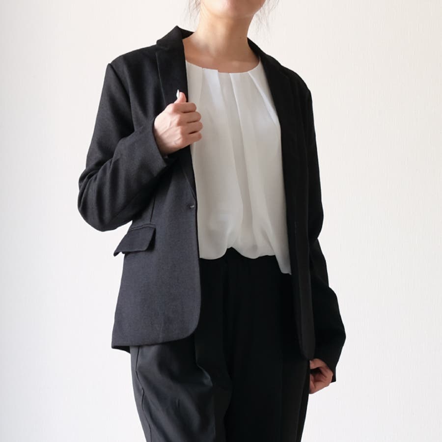中に何着ててもこれを羽織れば、しっかりオフィスカジュアルに見えます!