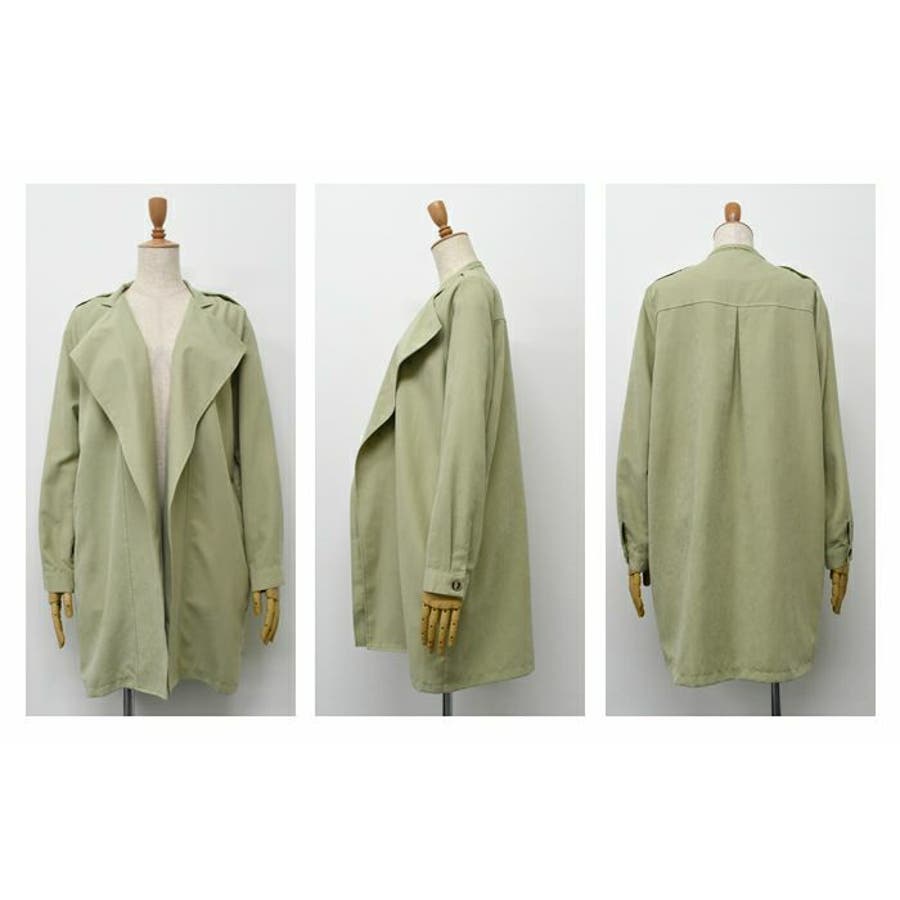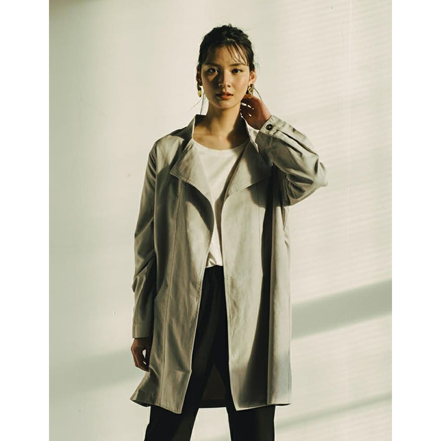 春夏の羽織りものとしてちょうどいい生地の厚みで、着心地も柔らかで、万能アウターって感じです。色もベージュにしたので、中に着るものはなんでも合いそうです。
