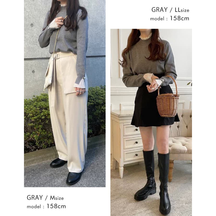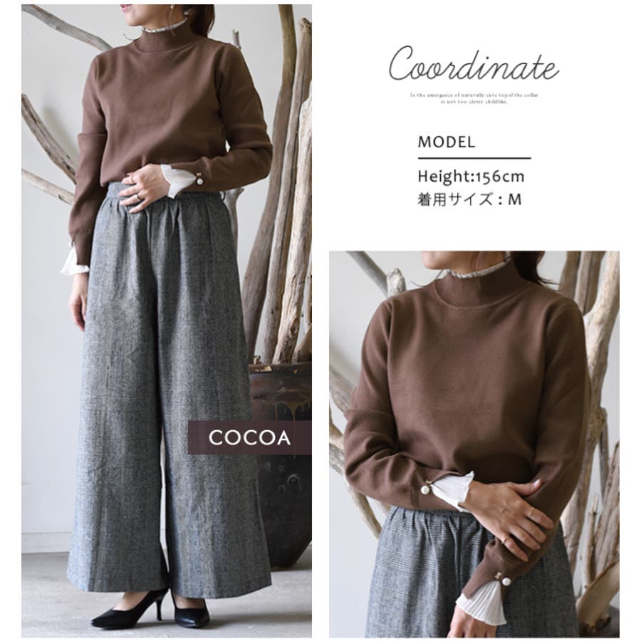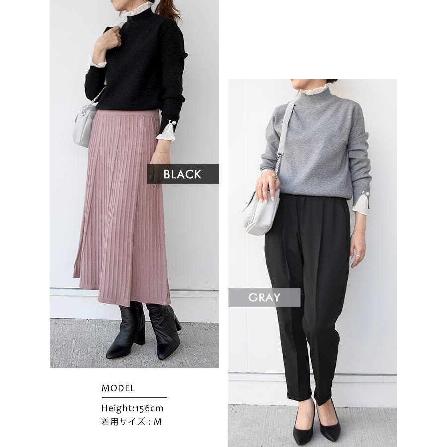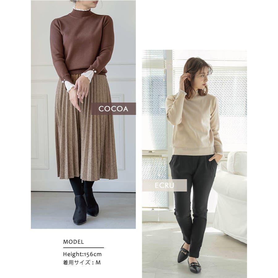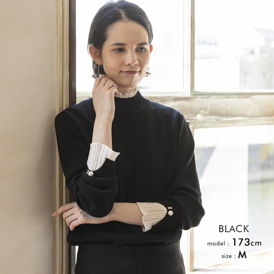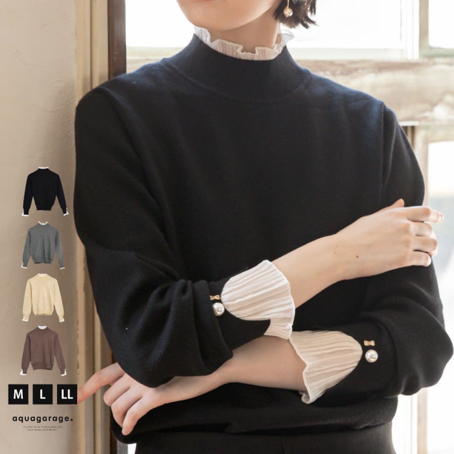 ニット トップス レディース 秋 冬 長袖 M L LL 袖口プリーツ