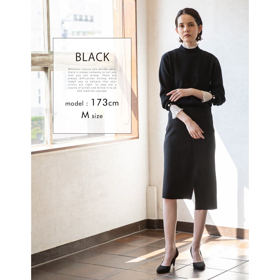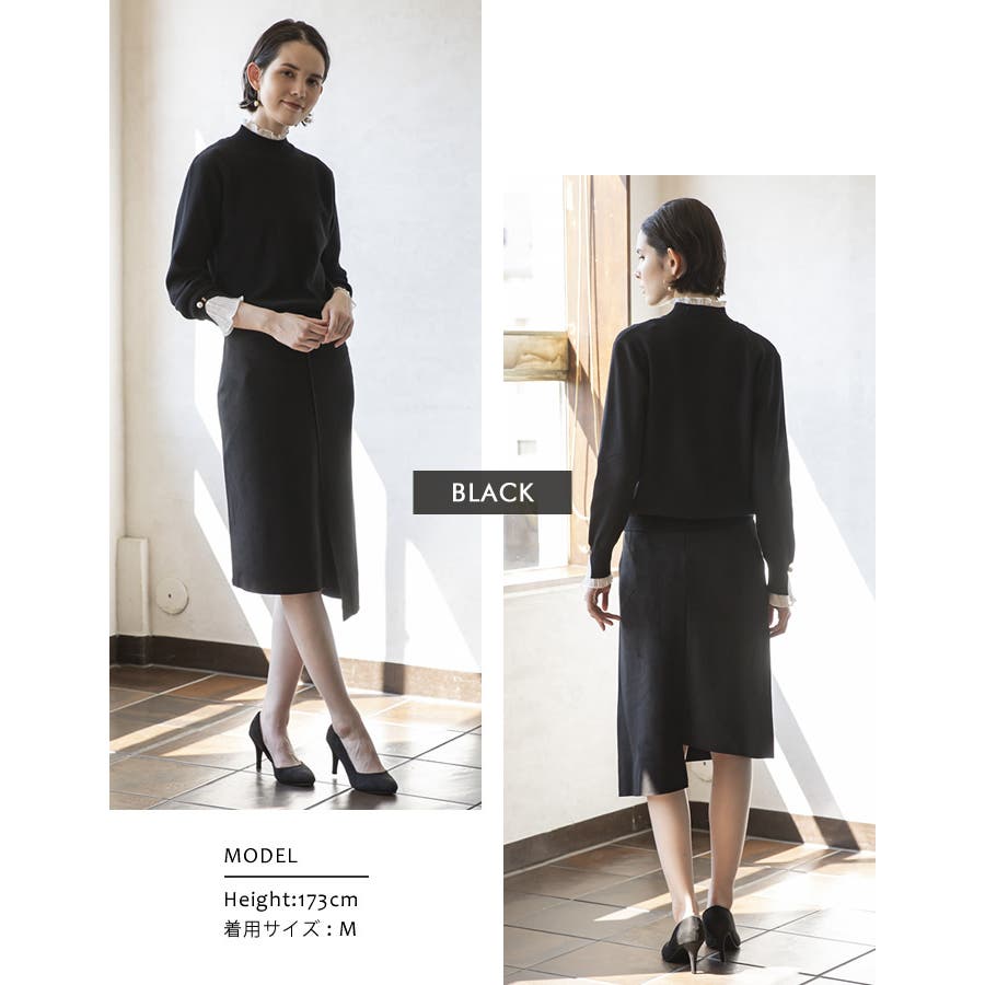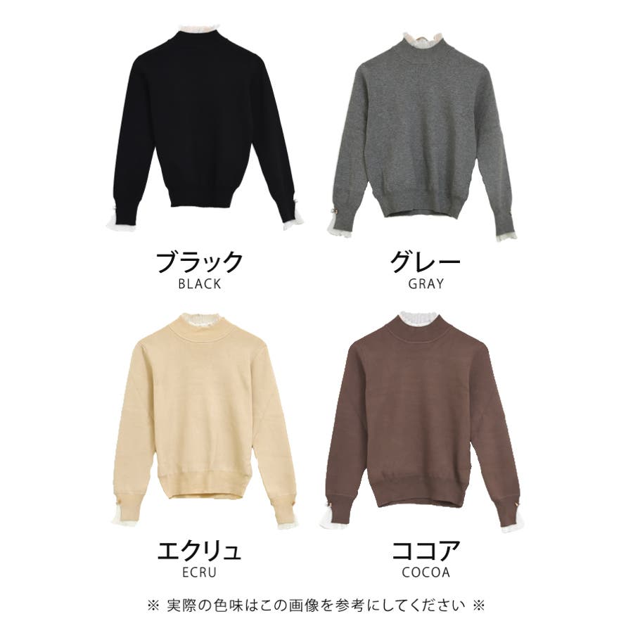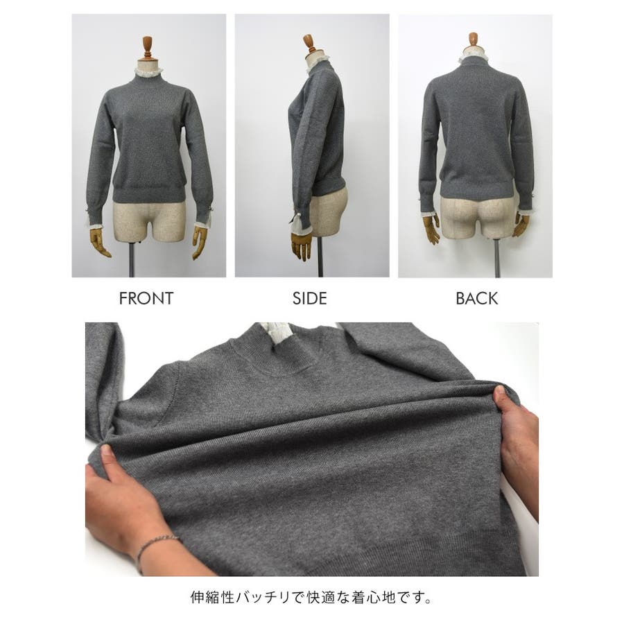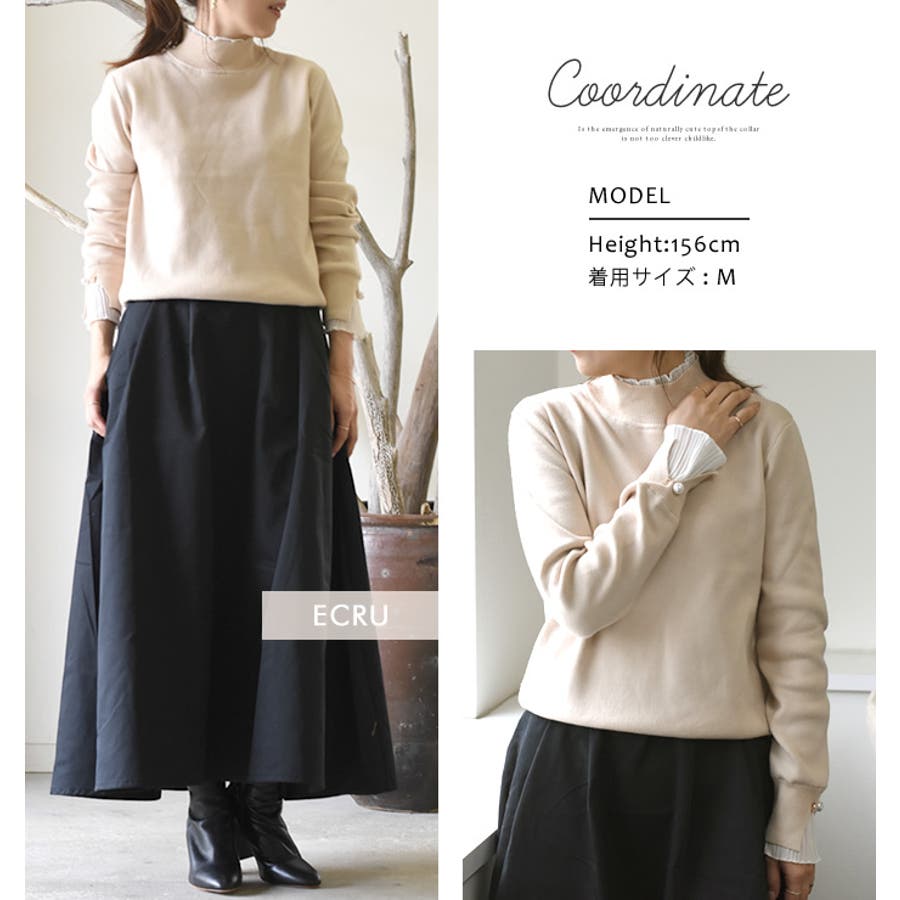 上品 清楚 ハイネック レイヤード風 重ね着風 異素材