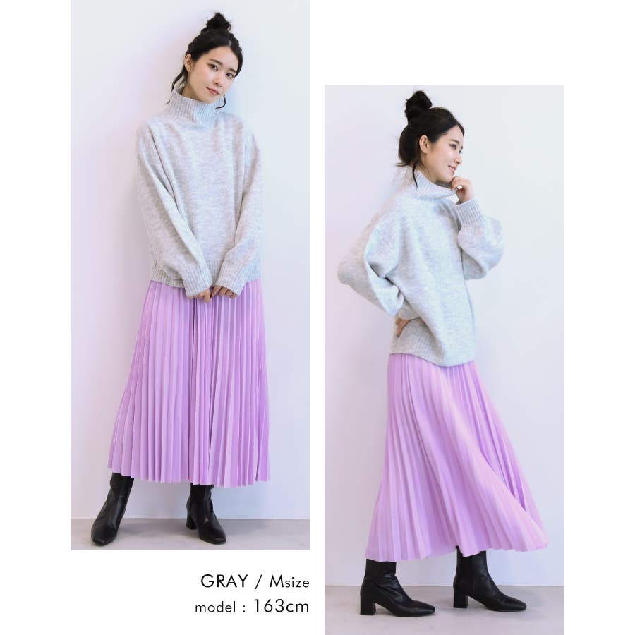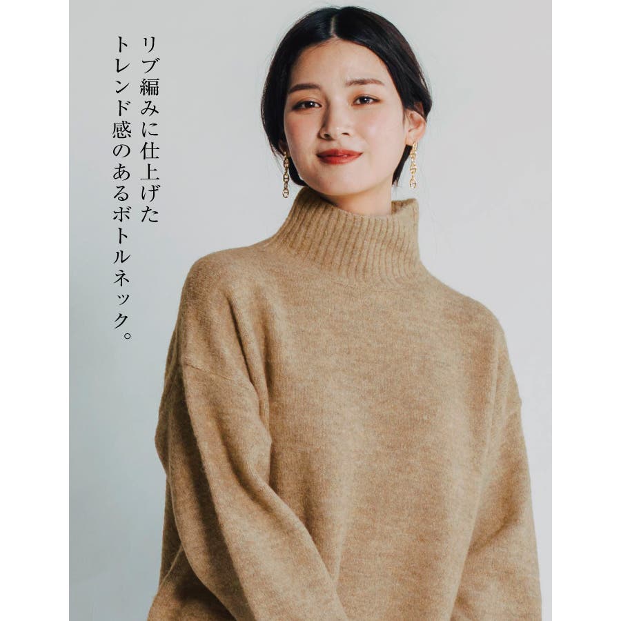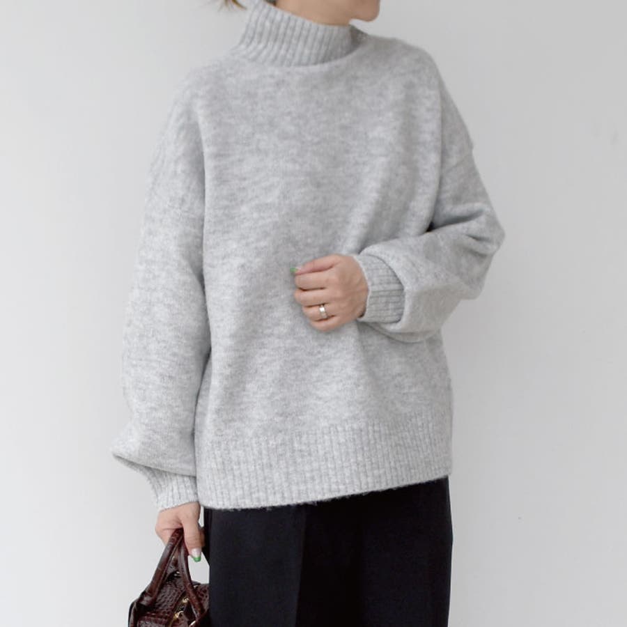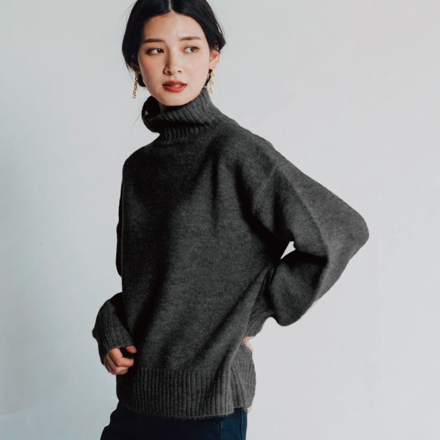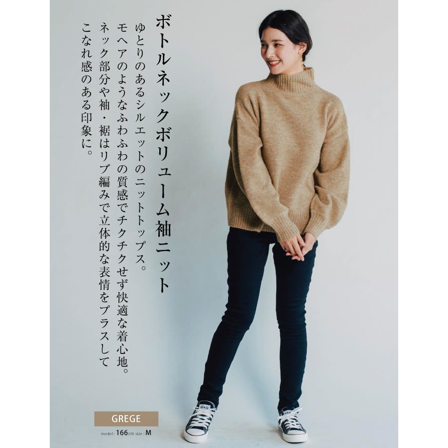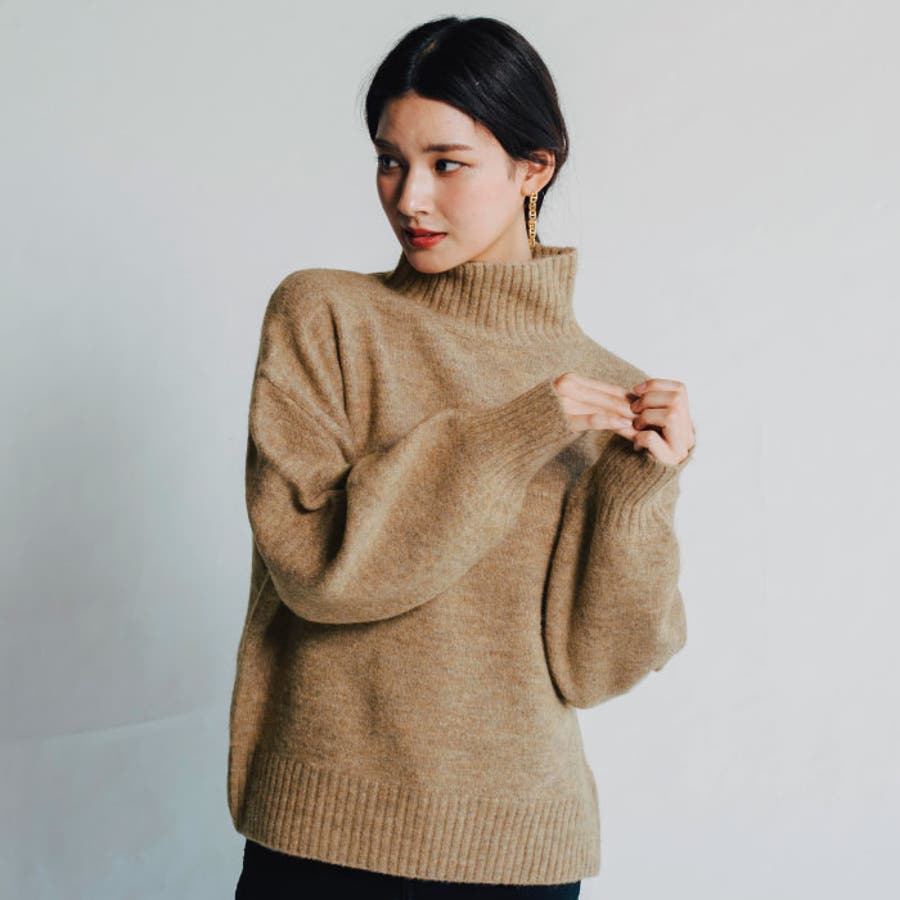 ふわふわの質感でチクチクしない!ボトルネックボリューム袖ニット