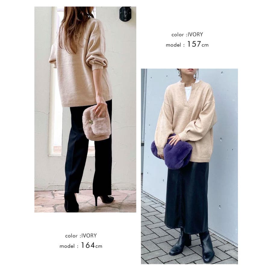 ゆるシルエットキーネックニット