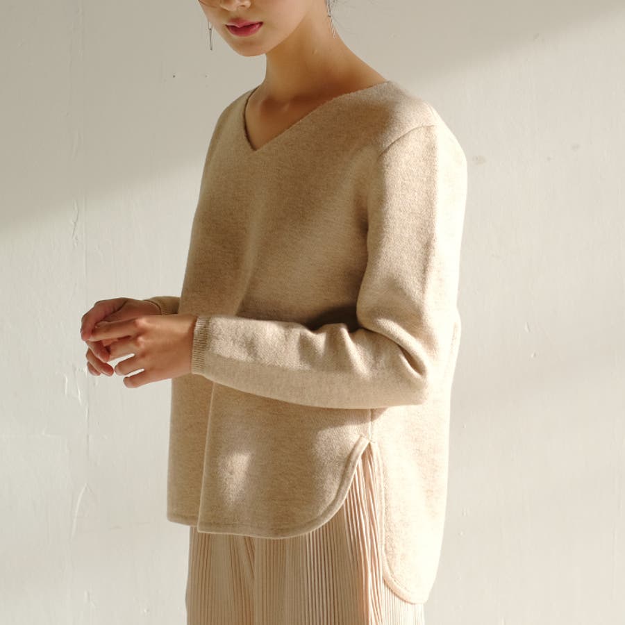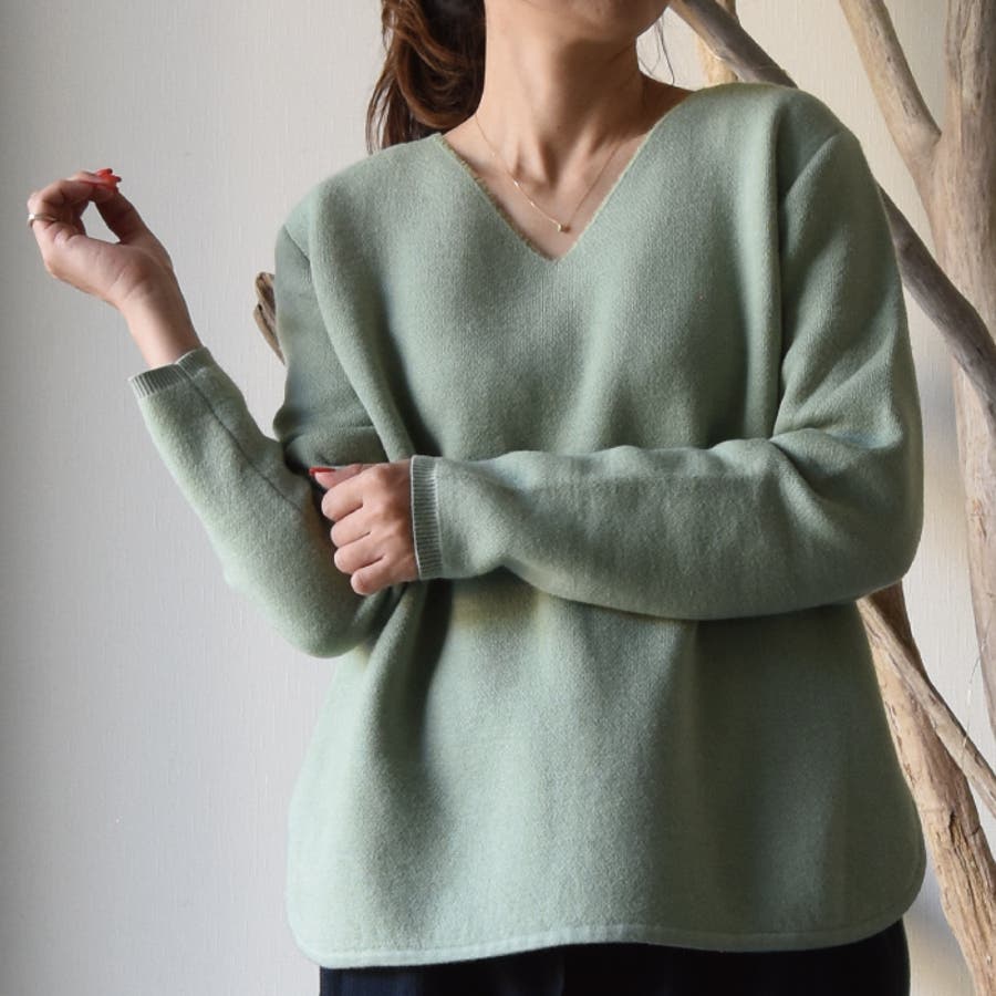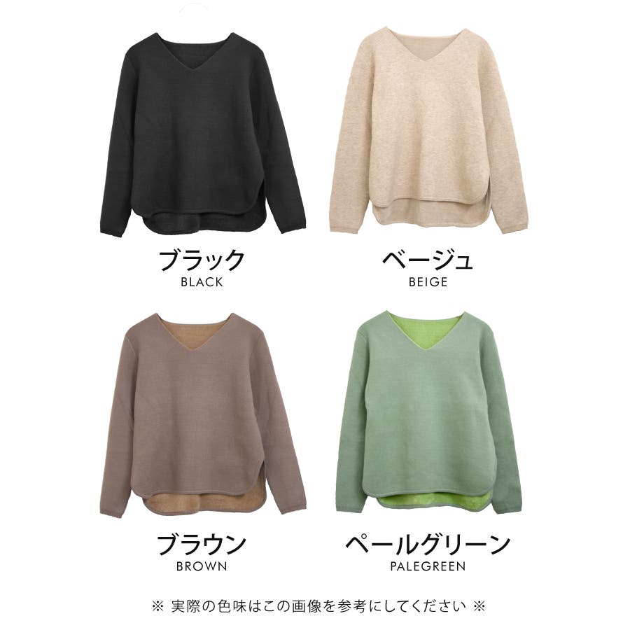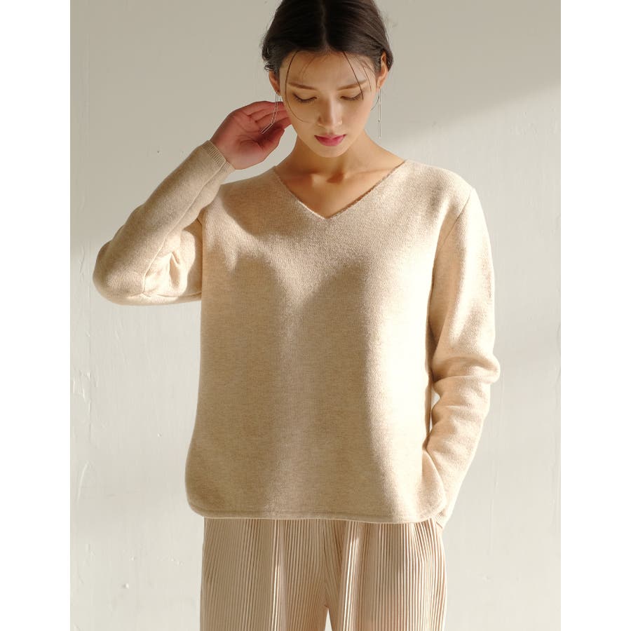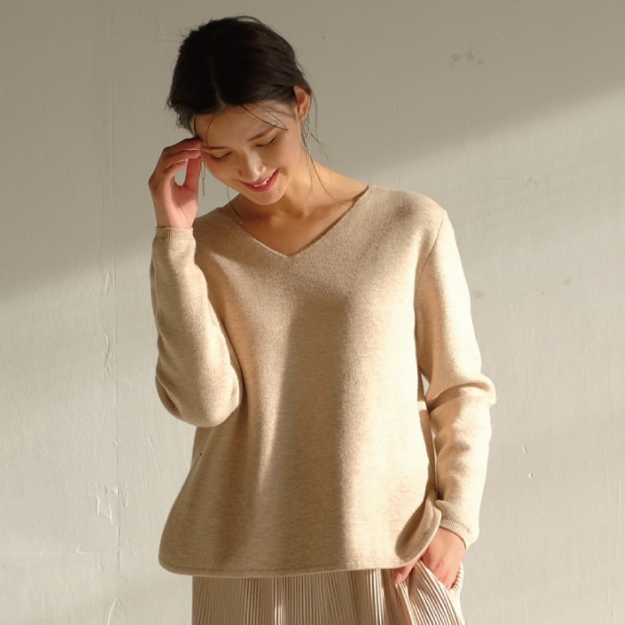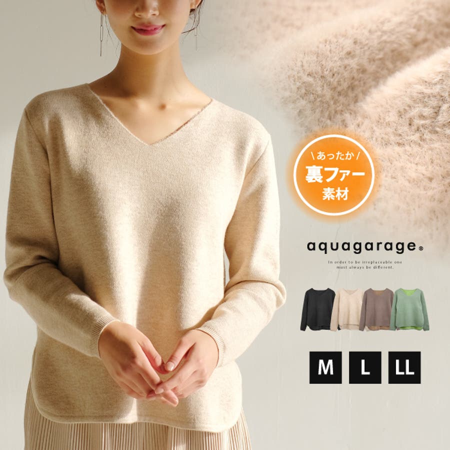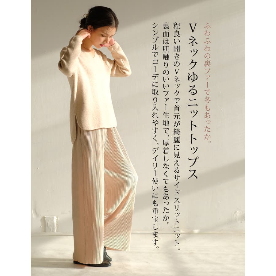 ふわふわの裏ファーで冬もあったか。Vネックゆるニットトップス