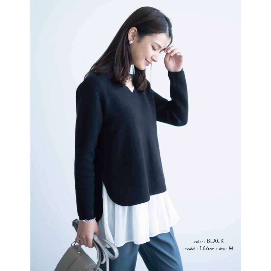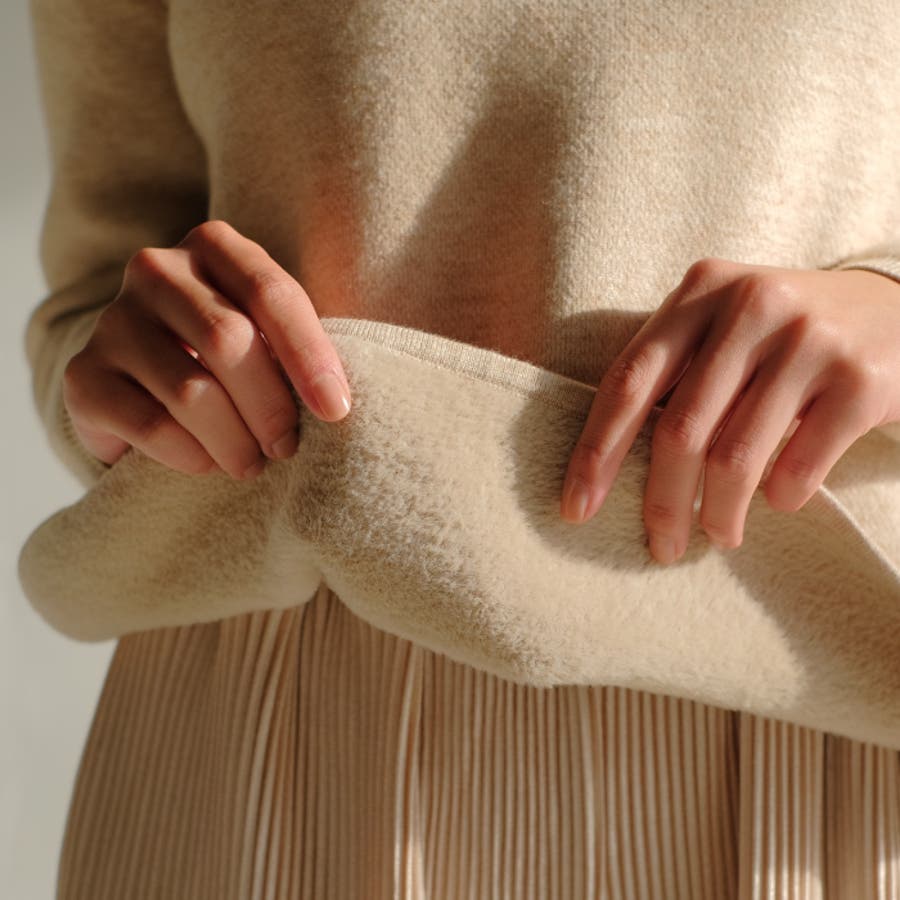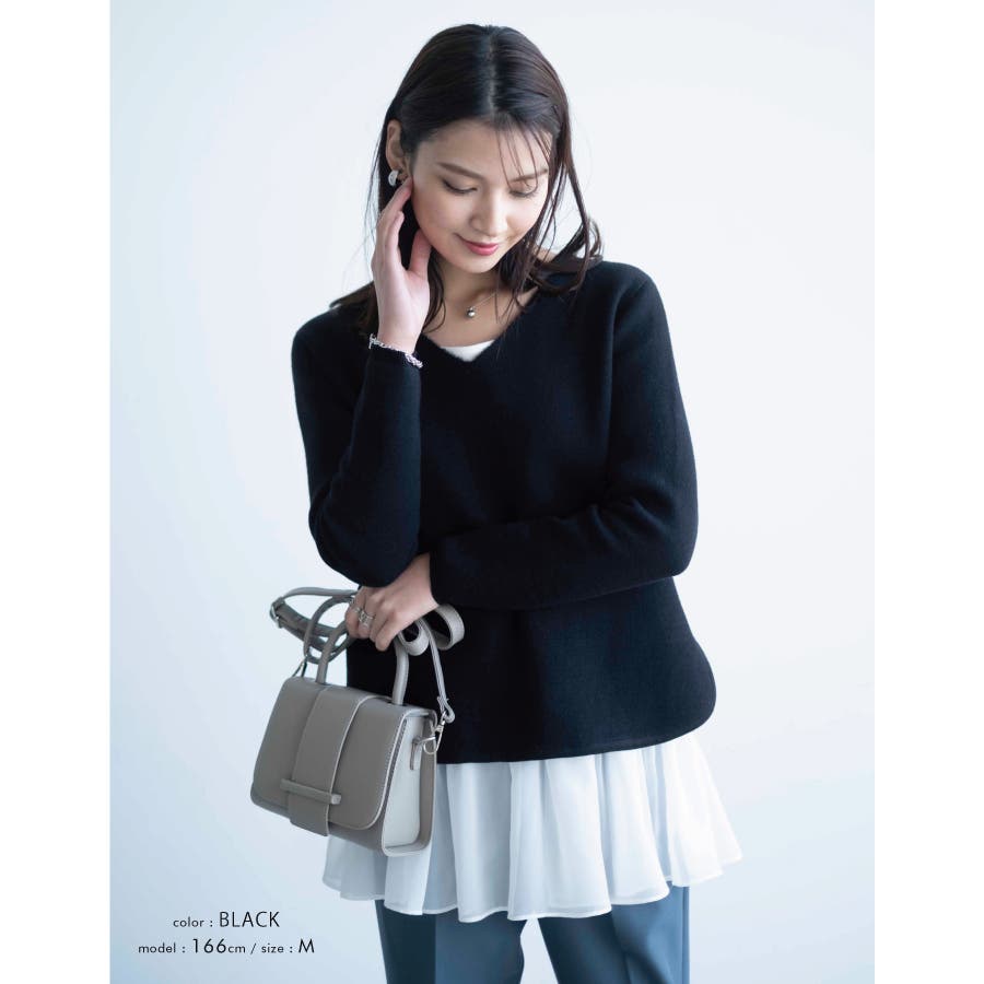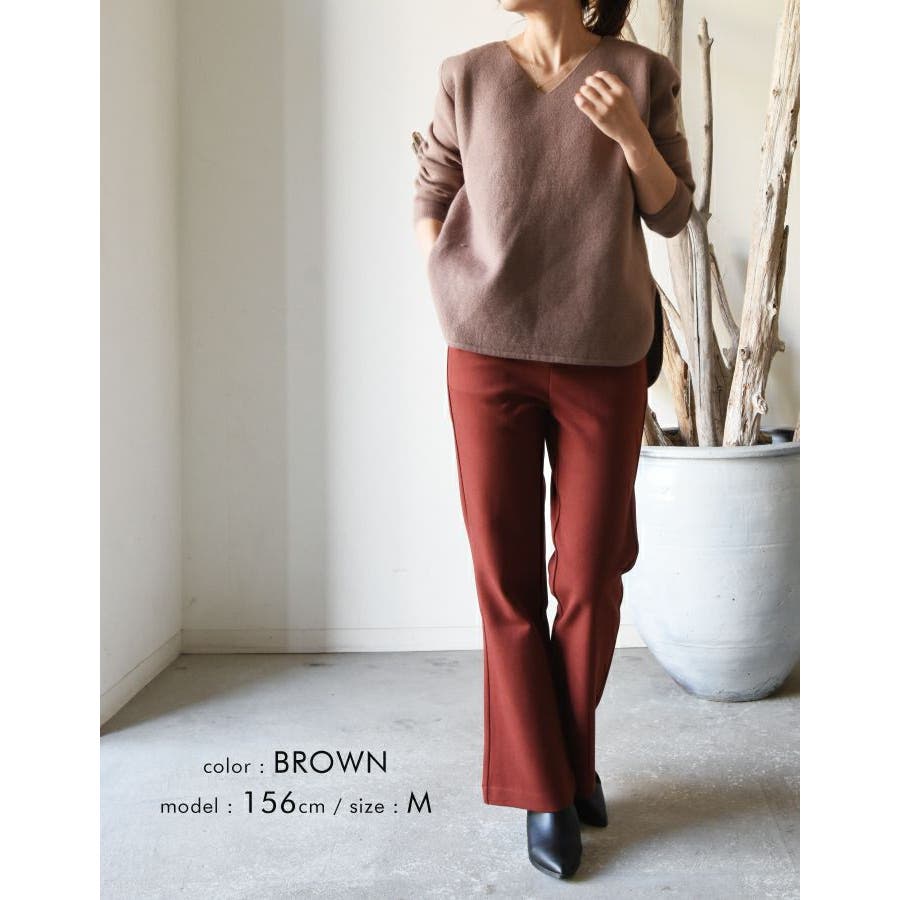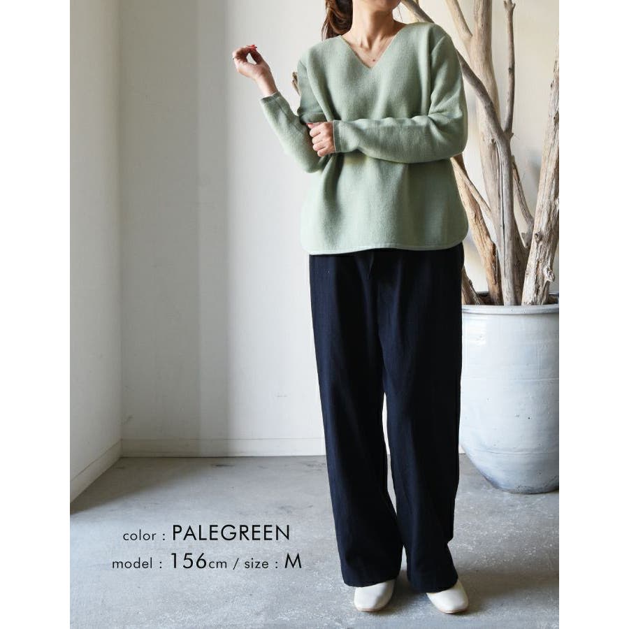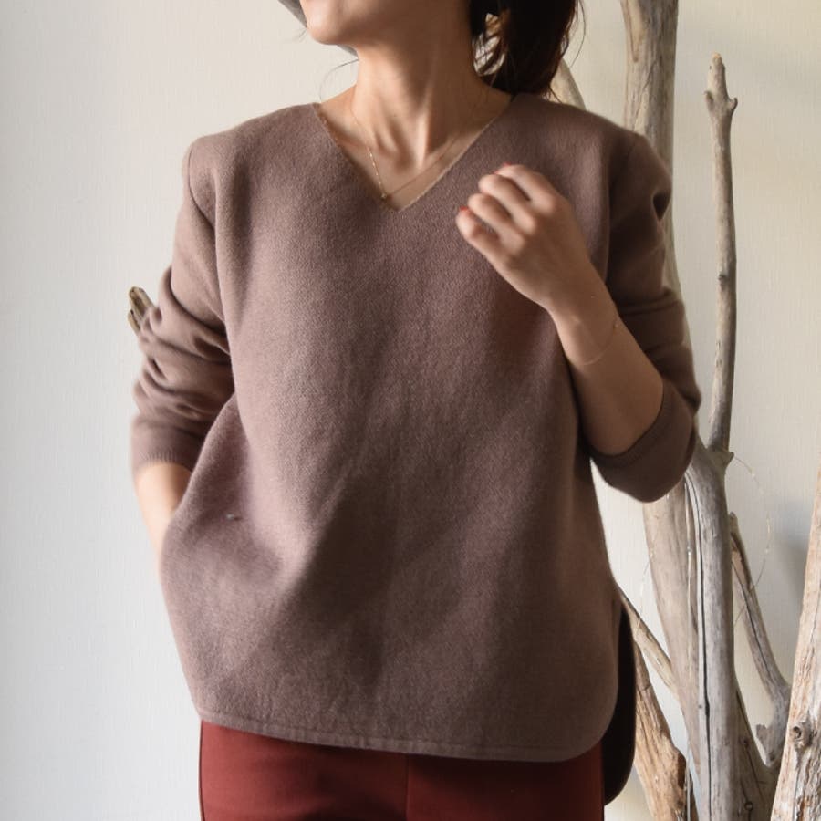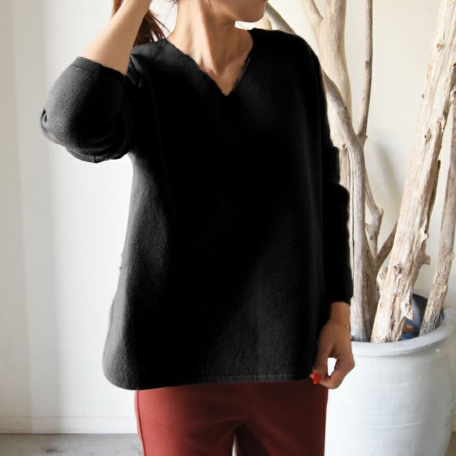 ふわふわの裏ファーで冬もあったか。Vネックゆるニットトップス