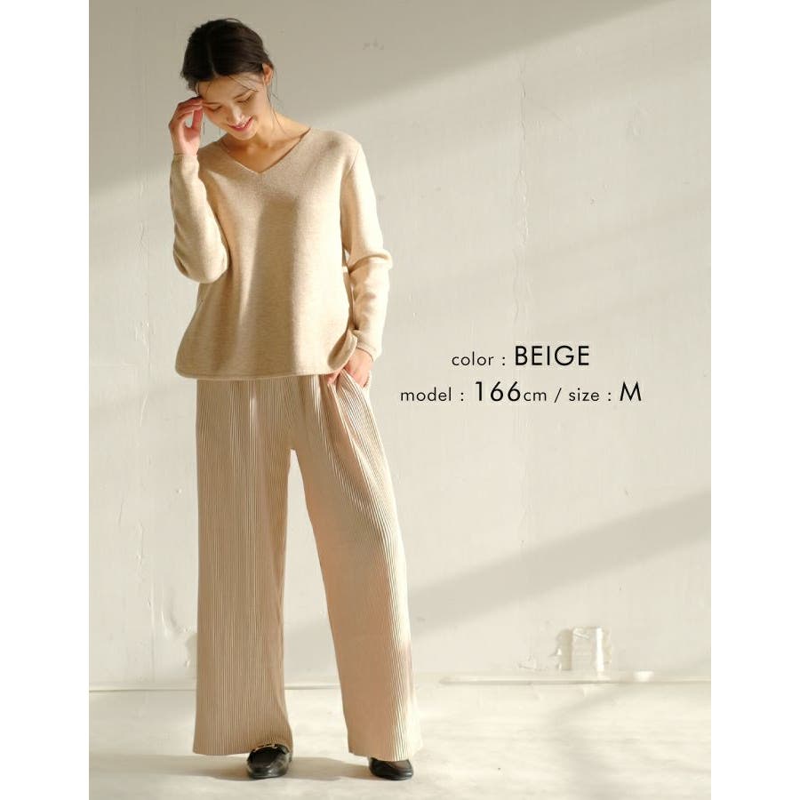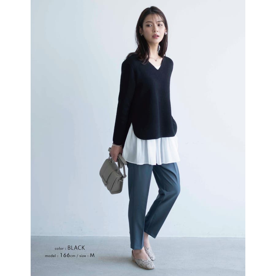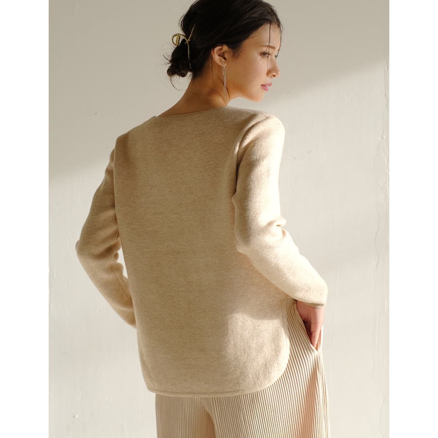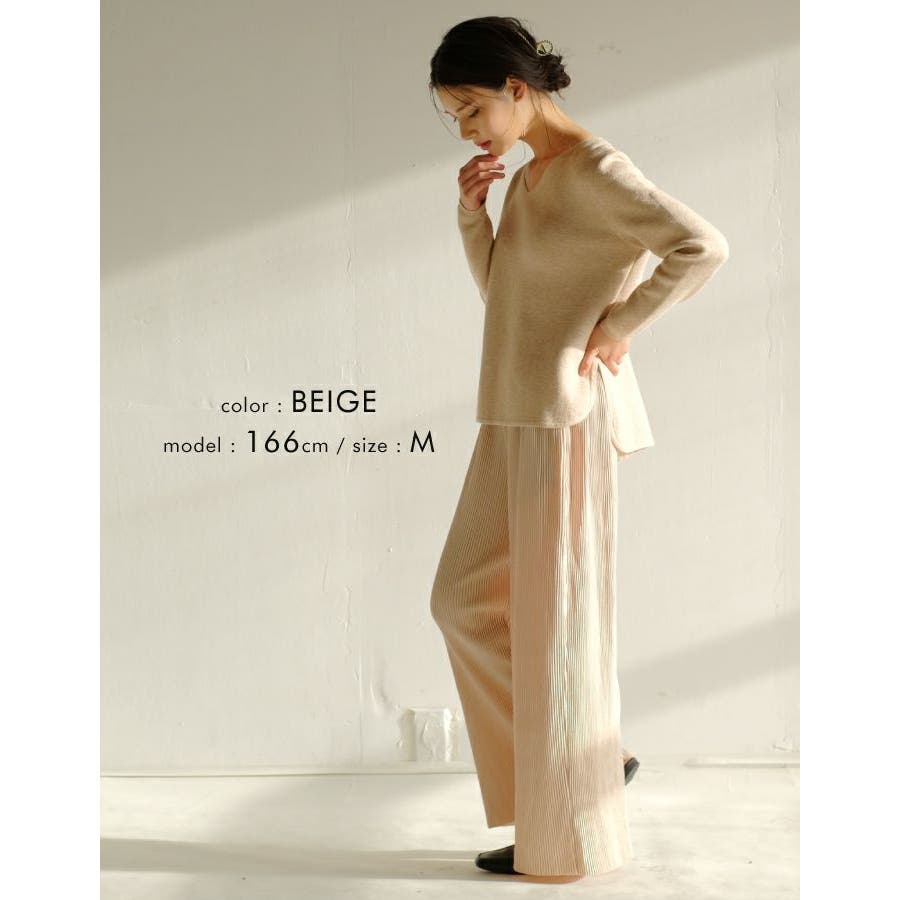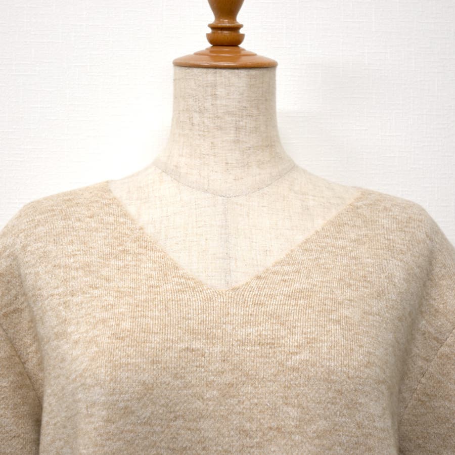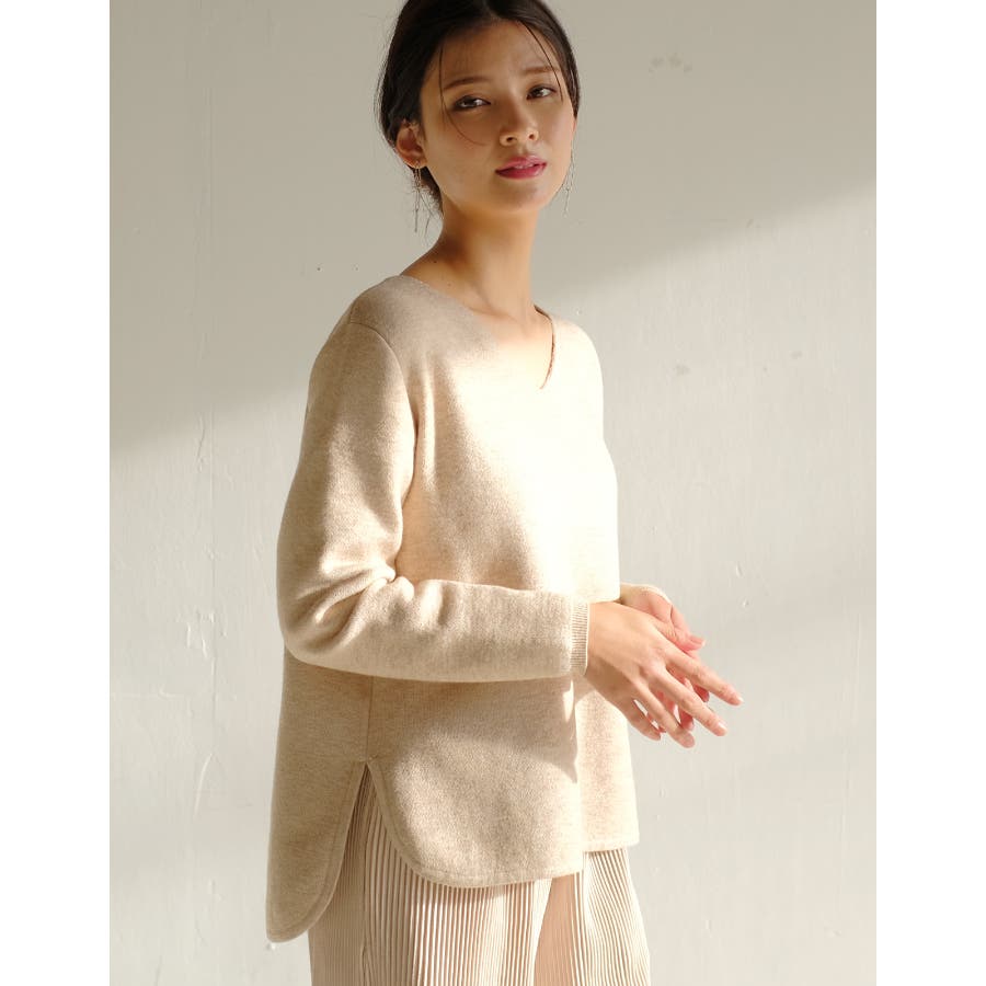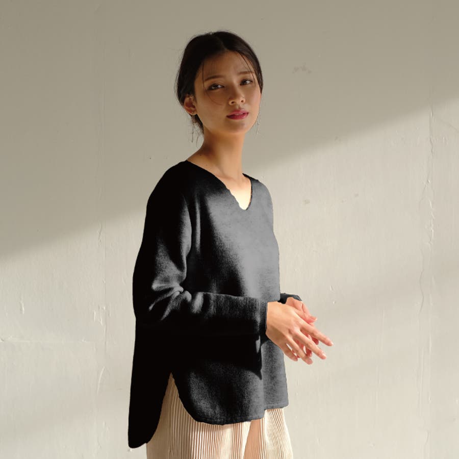 程良い開きのVネックで首元が綺麗に見えるサイドスリットニット。