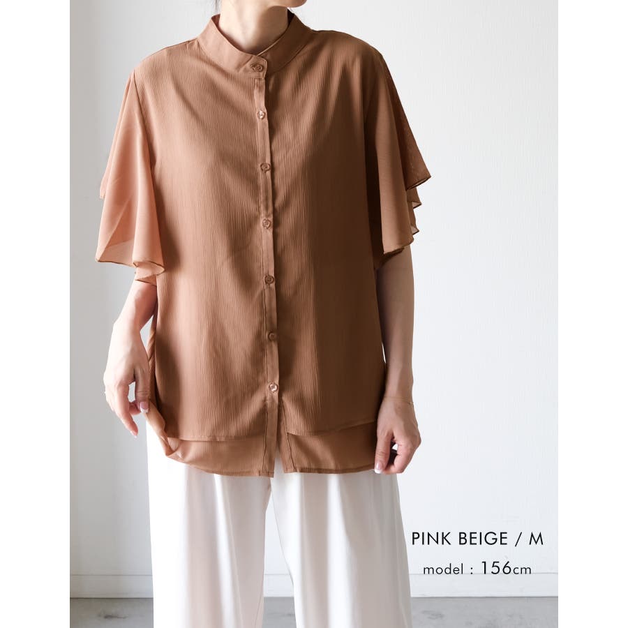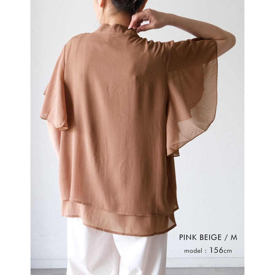 スタンドカラーと袖の形がとても綺麗だったので、別の色も購入しました。ピンクベージュはベージュが強めで、商品写真の通りの色です。