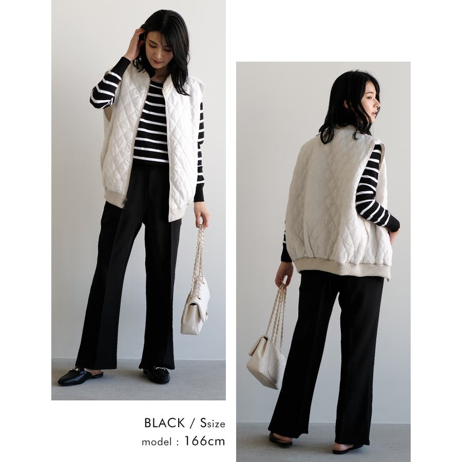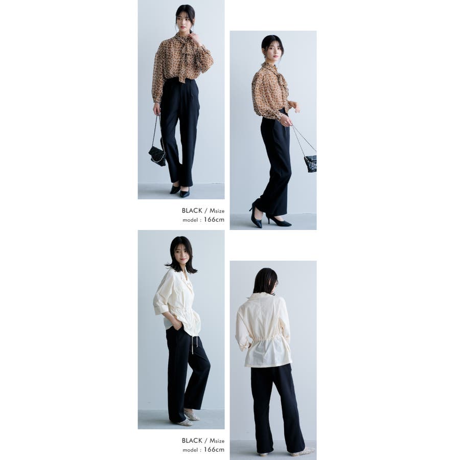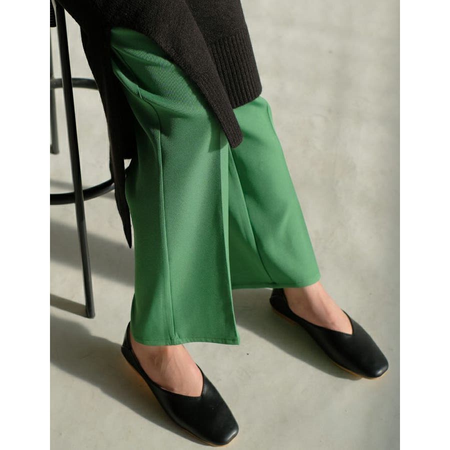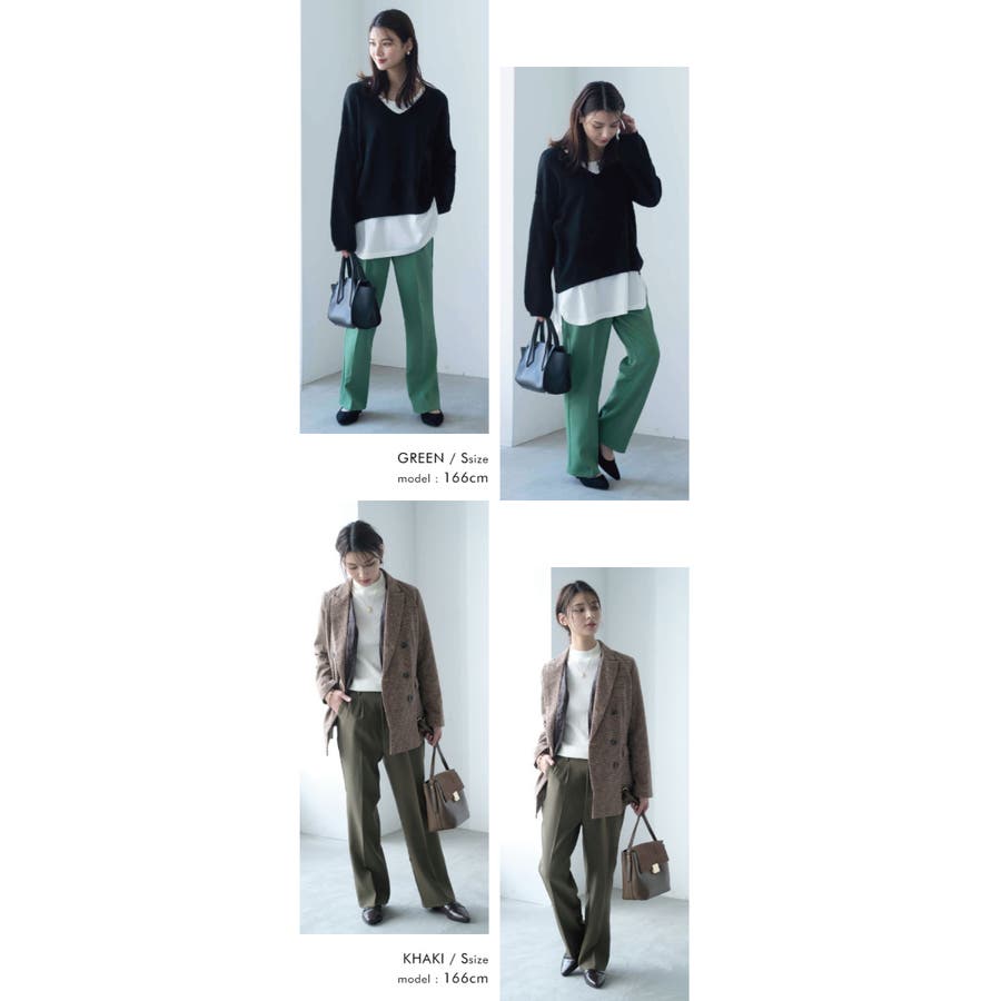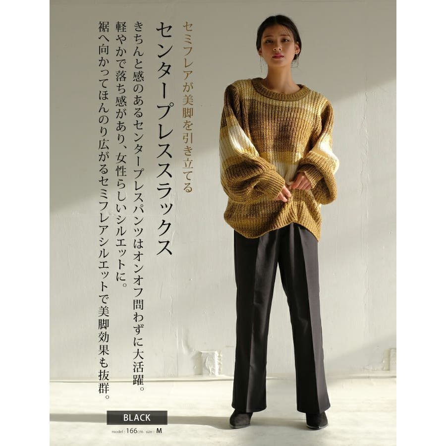裾へ向かってほんのり広がるセミフレアシルエットで美脚効果も抜群。