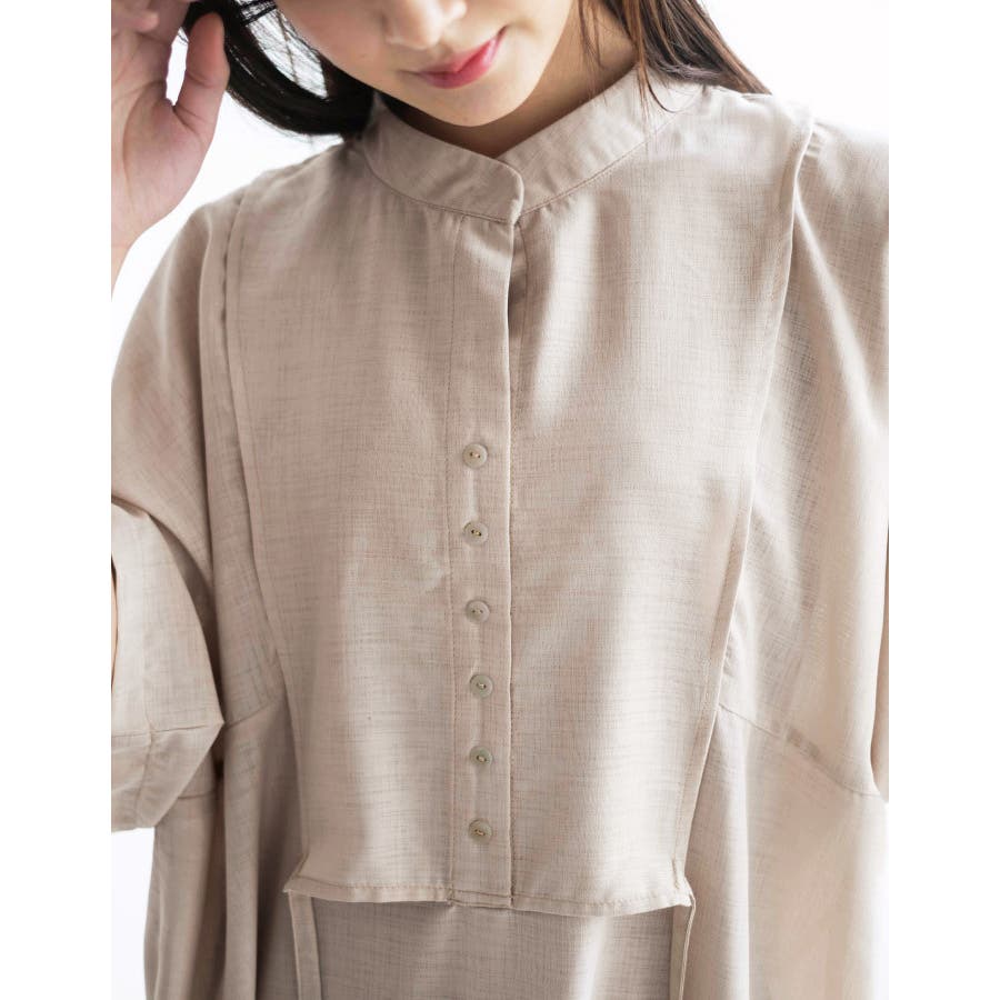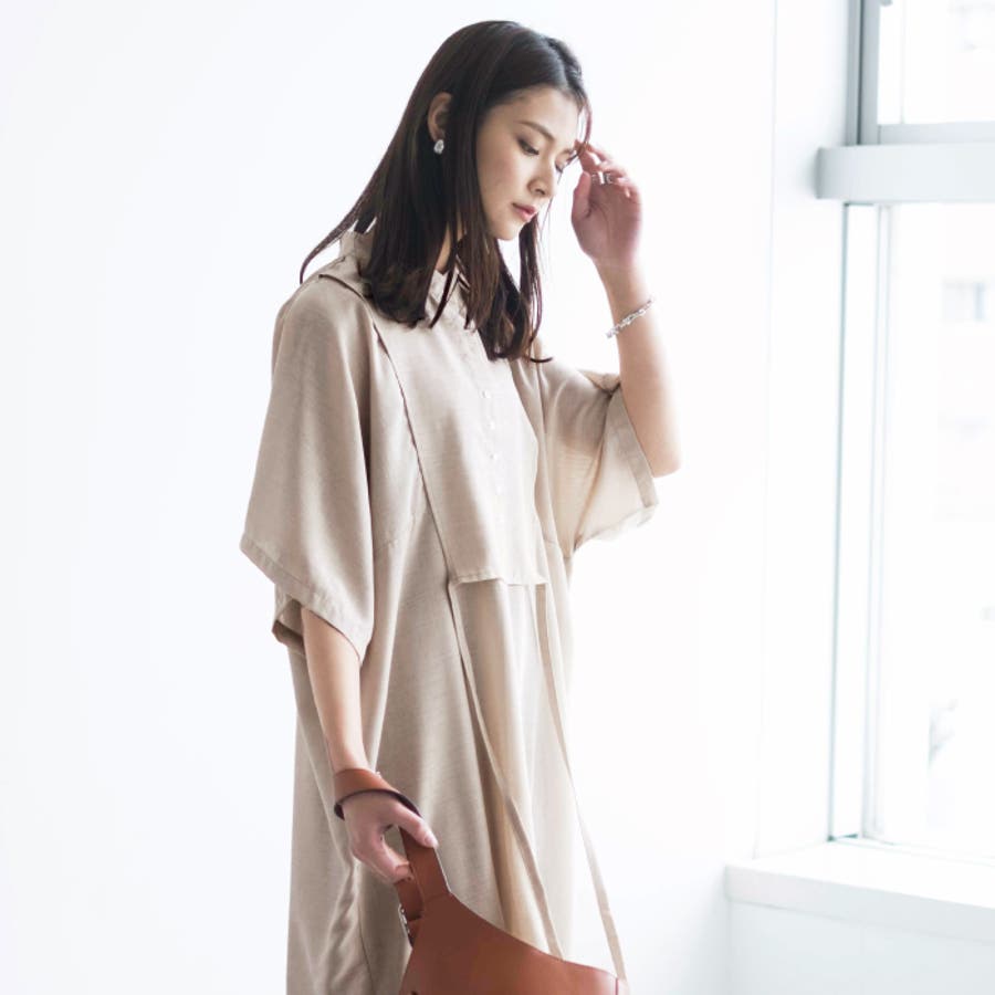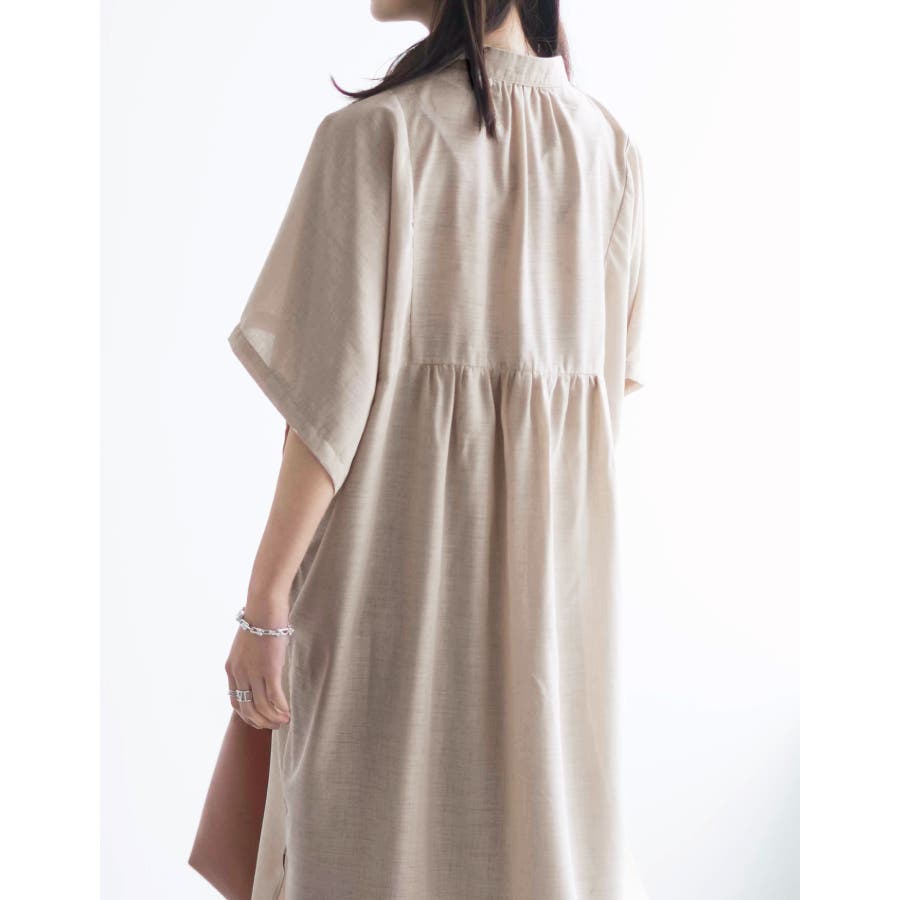 ナチュラルな風合いのスラブジョーゼット生地シャツワンピース。