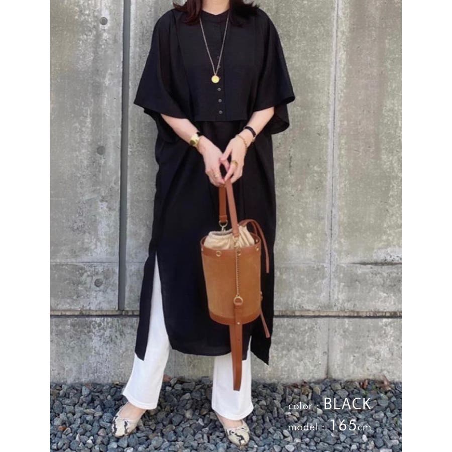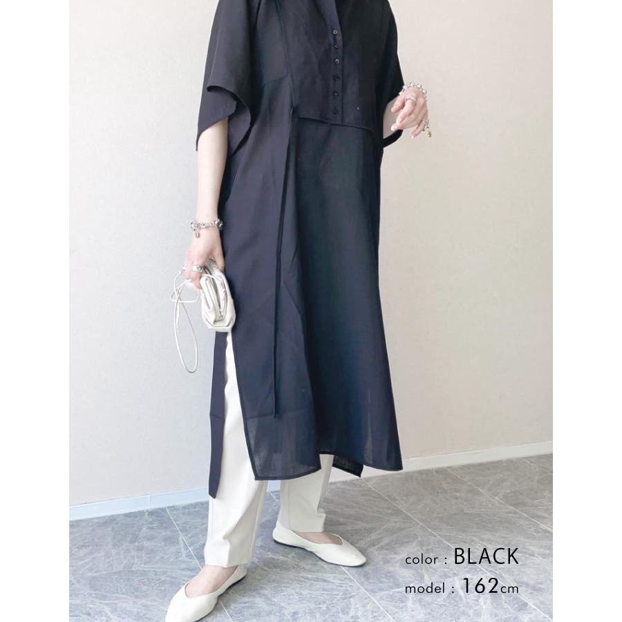 ブラウス シャツワンピ ロングシャツ 半袖 5分袖