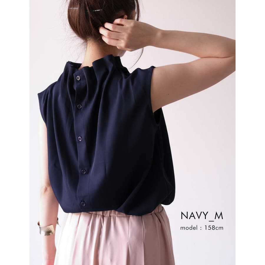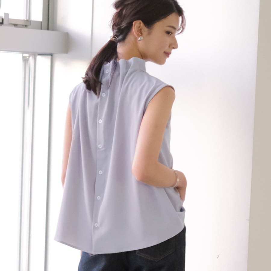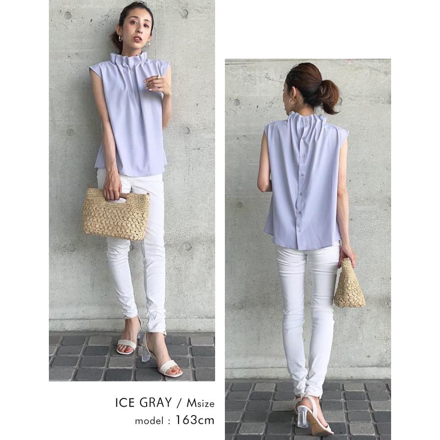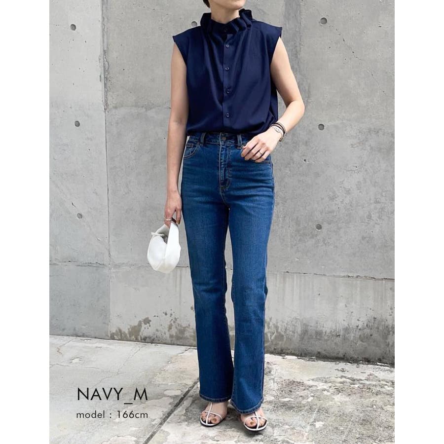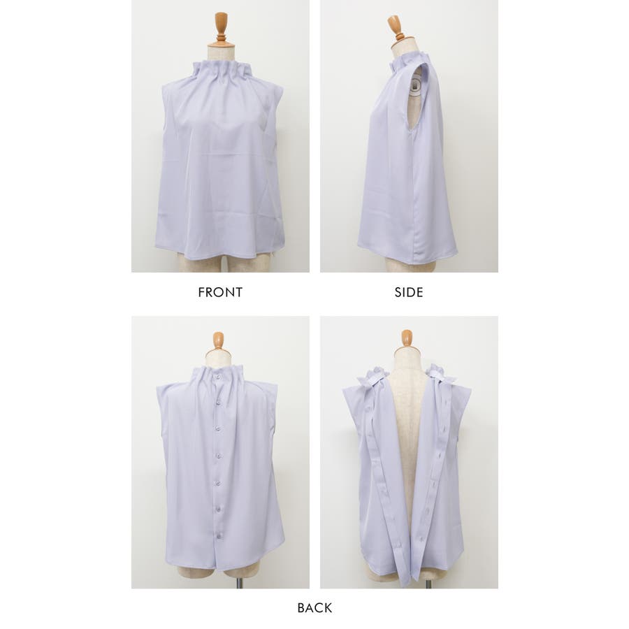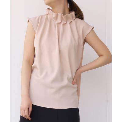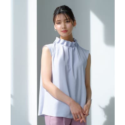 ボリューム感のあるフリルが華やかなノースリーブブラウス。