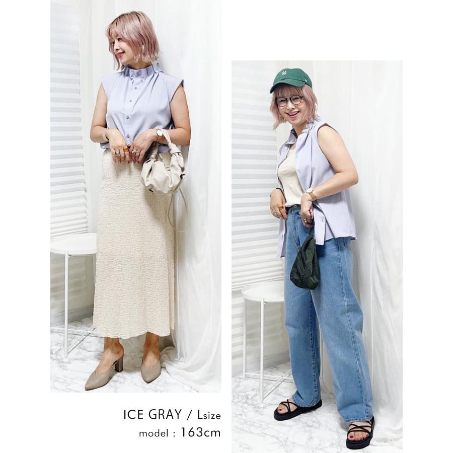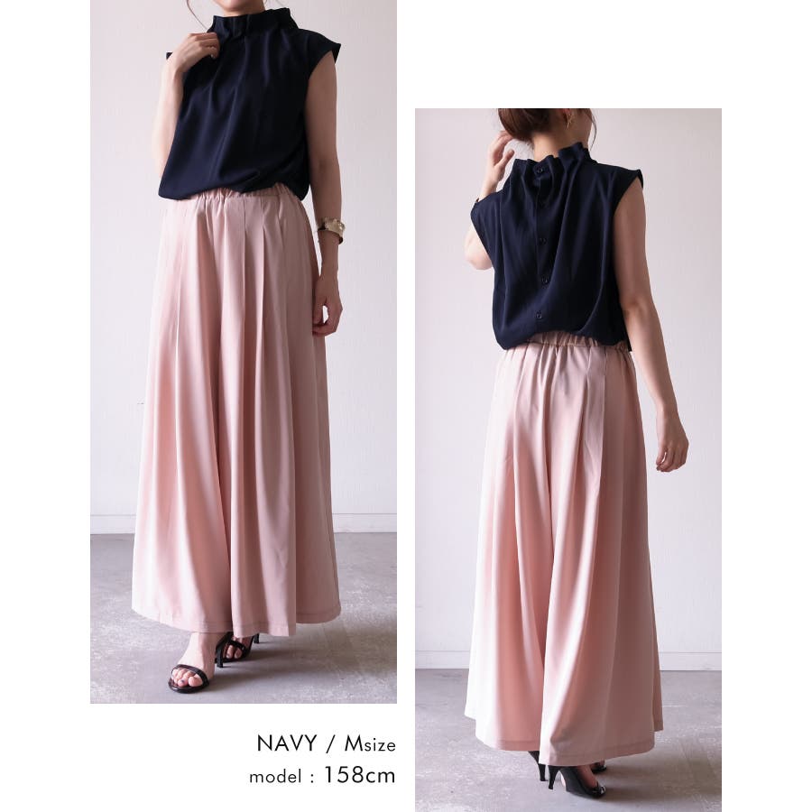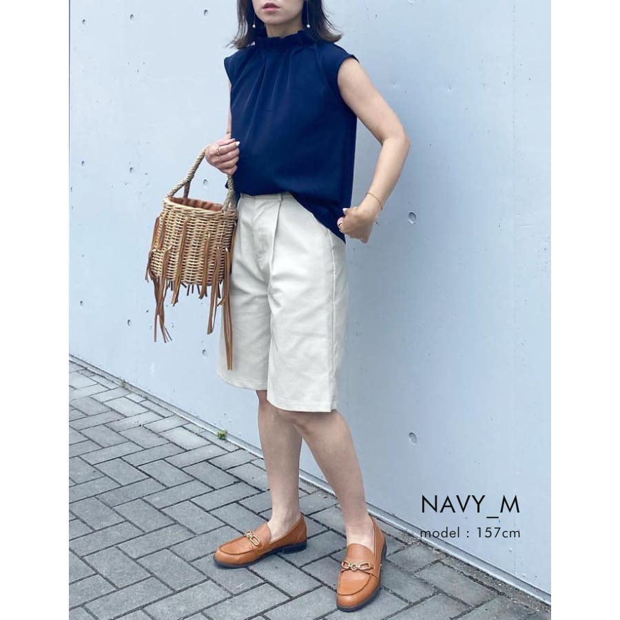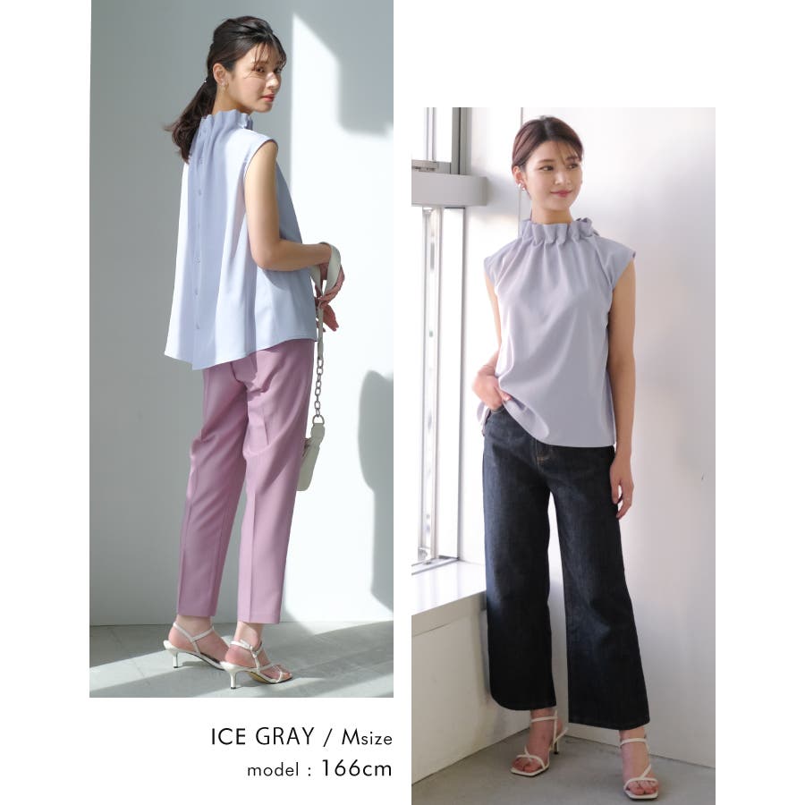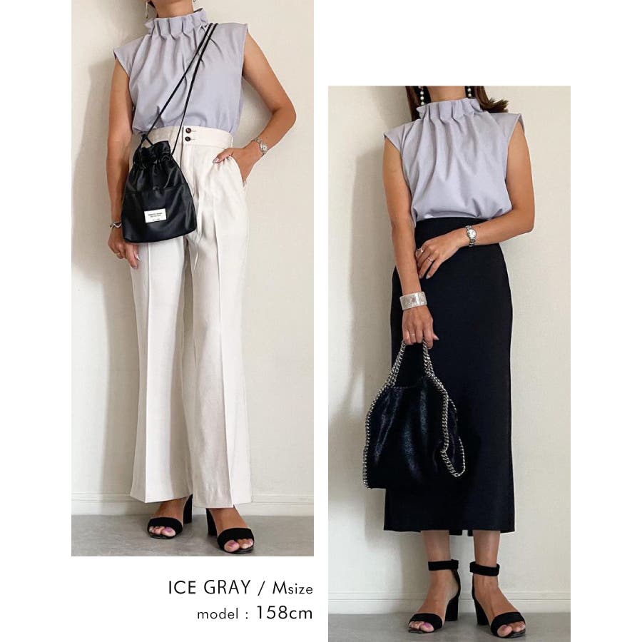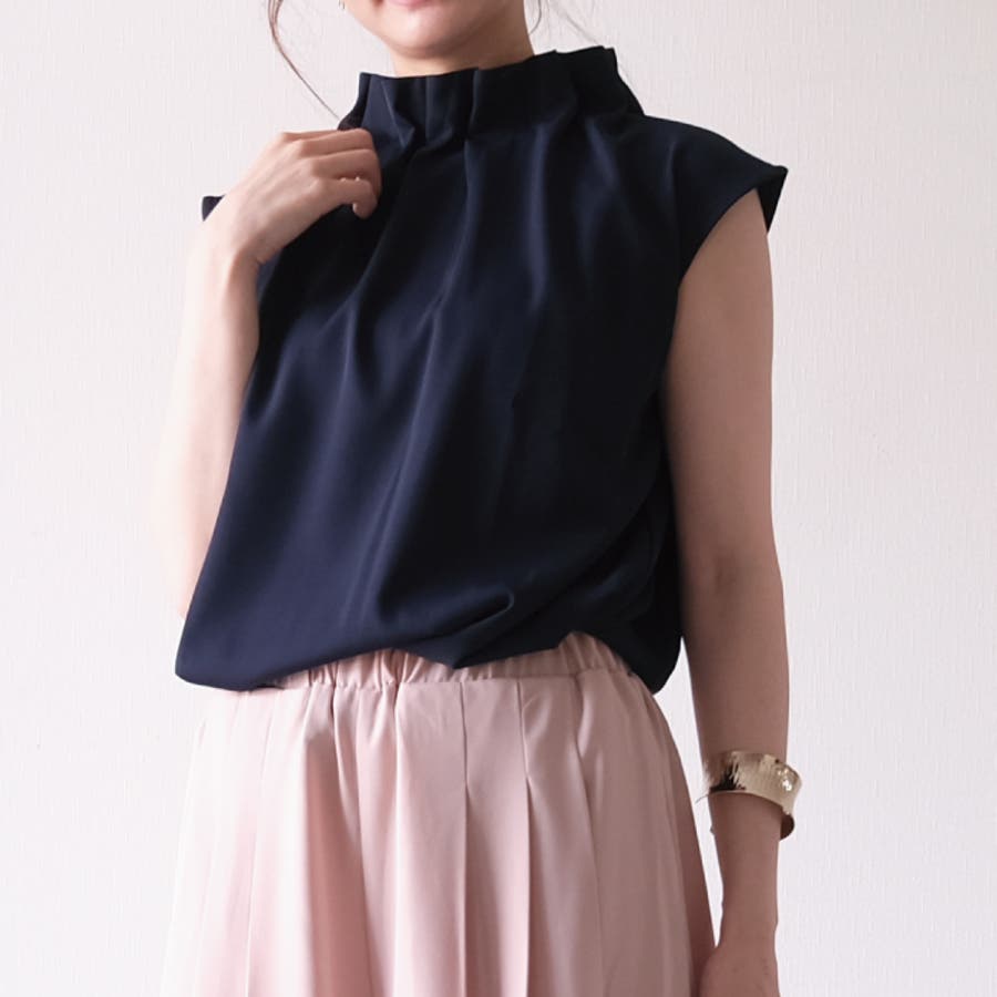 ノースリーブでも、フリルネックが上品なので、オンオフ問わず使えそうです。