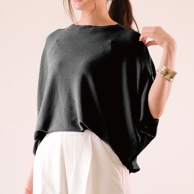 程よいルーズ感を纏うドルマンシルエット。 落ち感キレイな素材ならではのドレープが