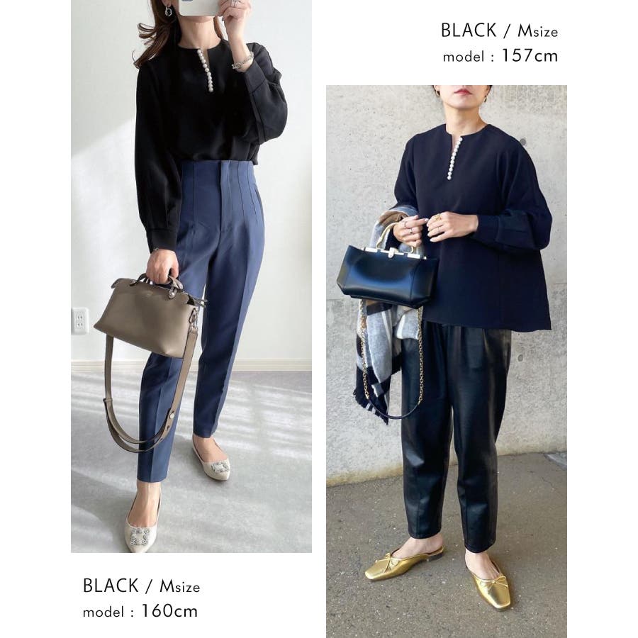 届いた際シワが気になったので一度アイロンをかけました。長く使えそうなデザインです。さん (30代 / 女性 / 身長160~165cm / 体重50~54kg)購入アイテム:サイズ Mカラー ブラックいつものトップスサイズ:Mサイズ感:ぴったり - パールの存在感!