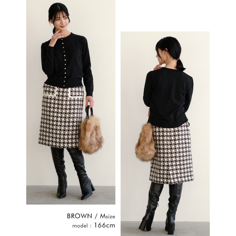 レトロで大人っぽい雰囲気を演出♪総柄ツイードタイトスカート
