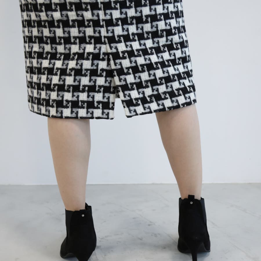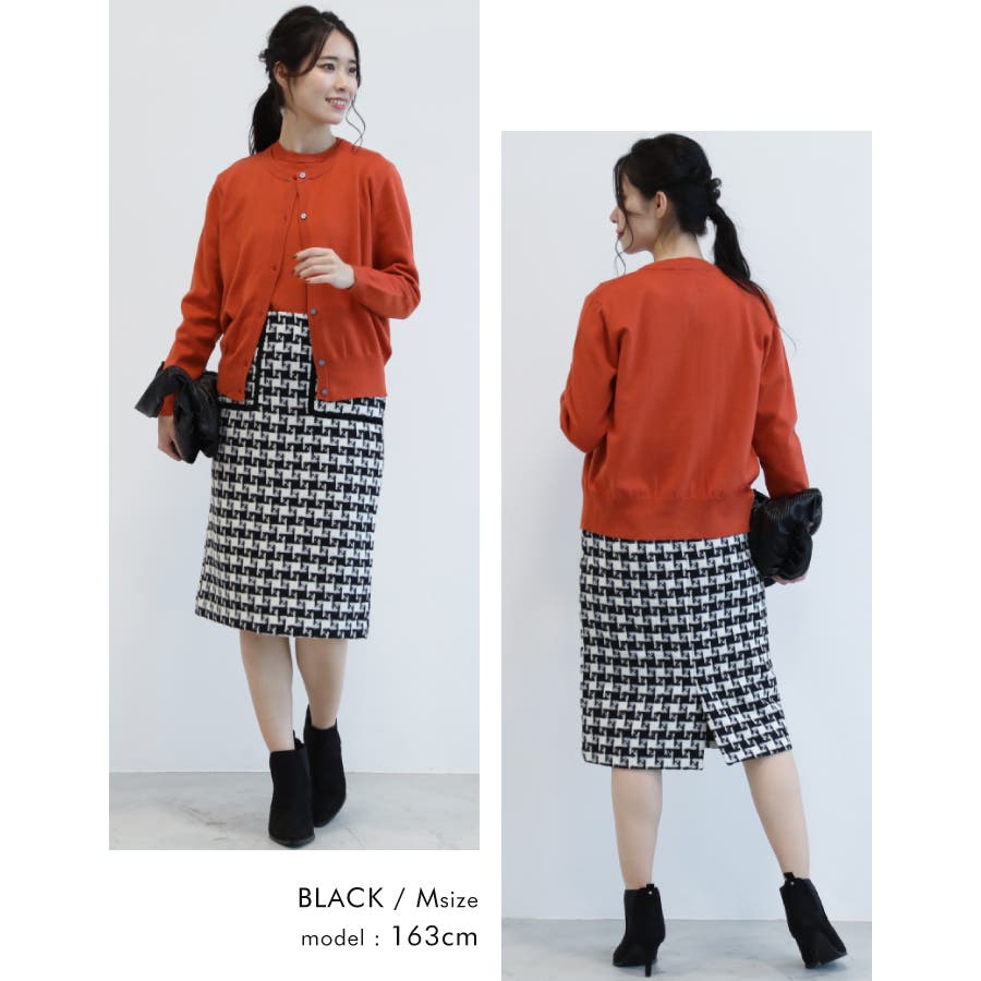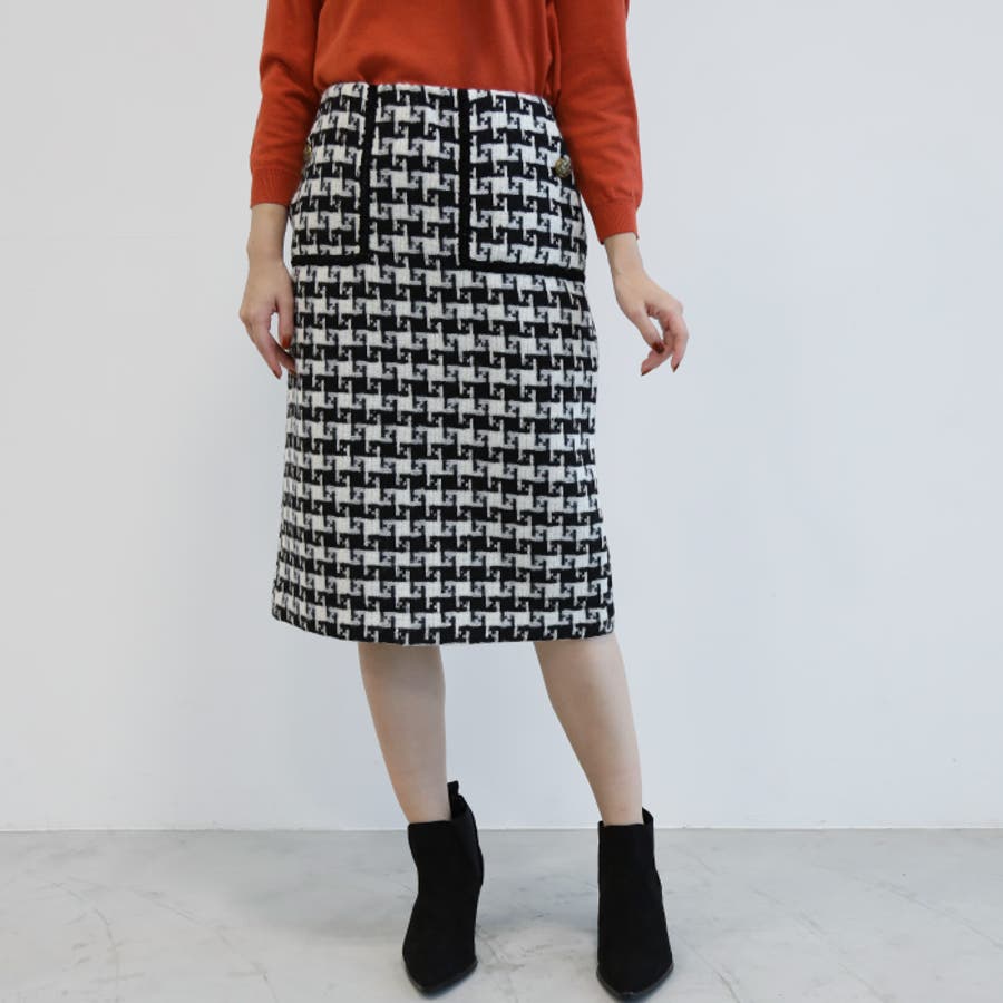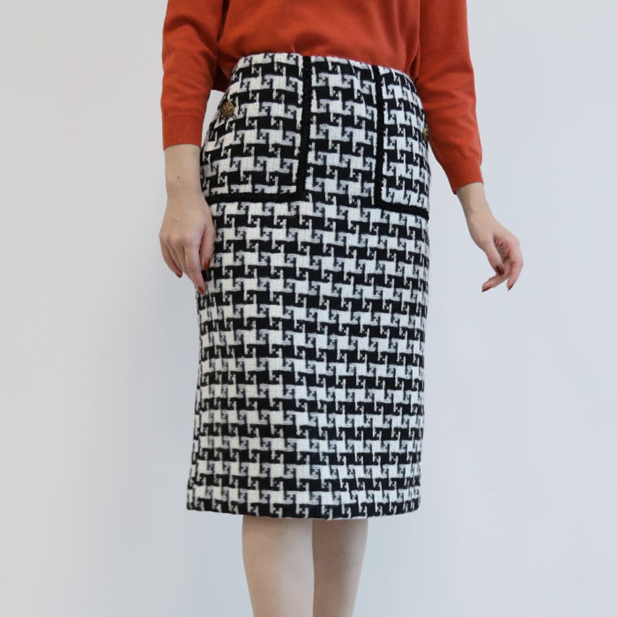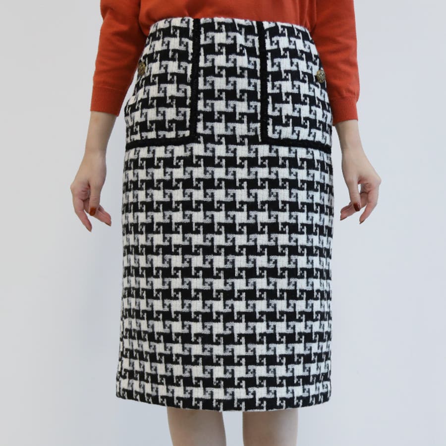 総柄ツイードタイトスカート レディース 春 秋 冬 M L タイトスカート ミドル丈 ミディアム丈 ミディ丈 ミモレ丈 ひざ下丈 膝丈 美ライン きれいめ 大人 上品 高見え ベーシック フェミニン きれいめ シンプル ビジネス オフィスウェア 通勤 セレモニー お呼ばれ ハウンドトゥース ファンシーツイード