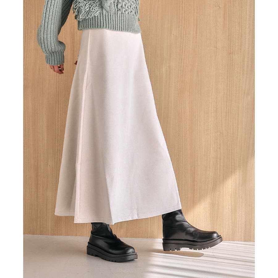 裾広がりのAラインが女性らしい印象を与えるフレアスカート。なめらかなフェイクスエードがシーズンムードを高めてくれます。シンプルなので幅広いコーデに活躍するアイテムです。