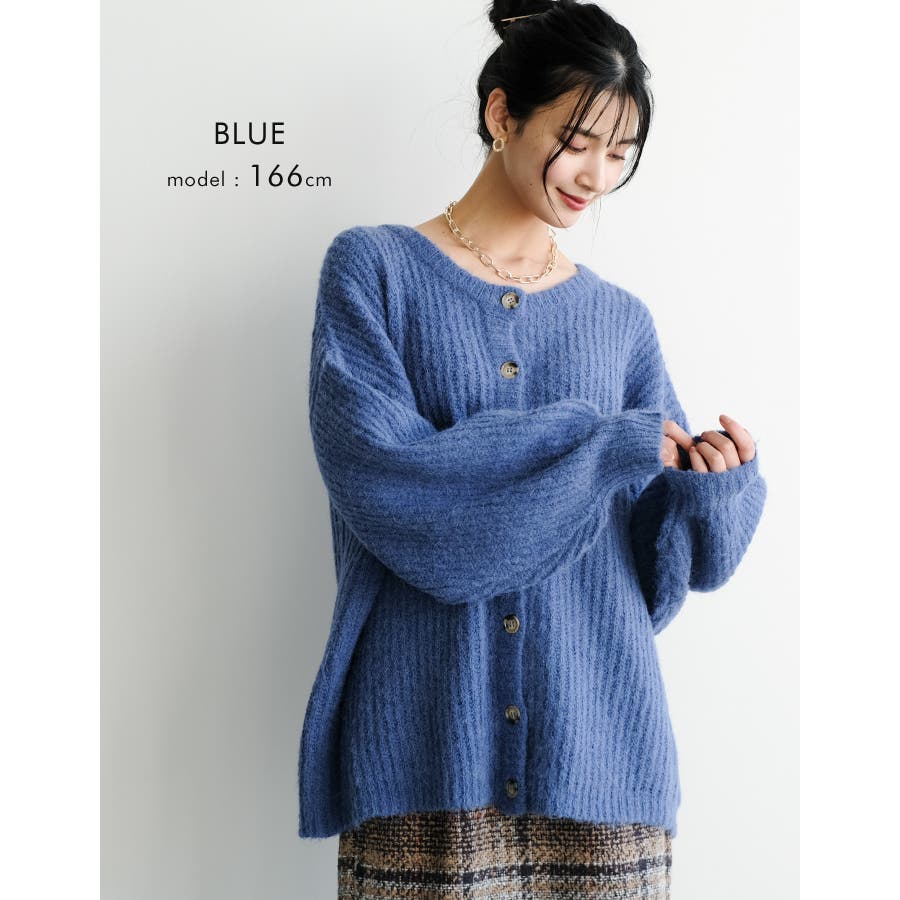 緩く柔らかなシルエットがリラックス感を演出!ボリュームスリーブニットカーディガン。