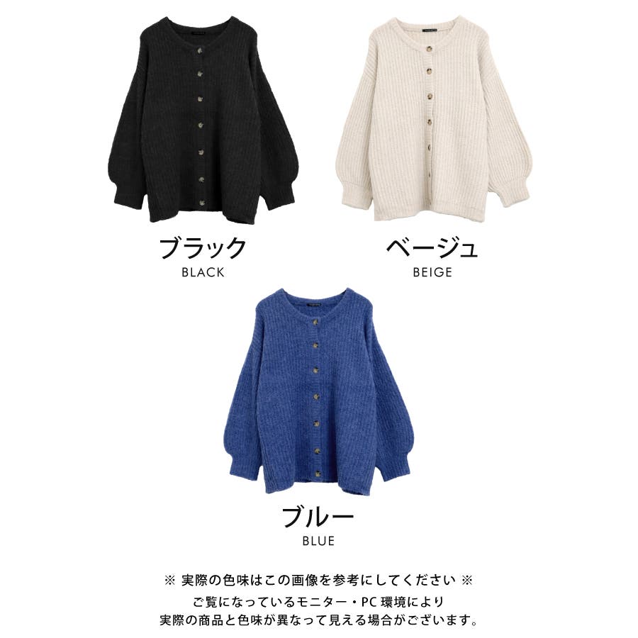 ボリュームスリーブカーディガン ニット トップス カーディガン ざっくりニット レディース 秋 冬 長袖 おしゃれ 羽織 厚手 前開き アウター ゆったり 華奢見せ 細見え 大きいサイズ レイヤード 重ね着 ルームウェア ワンマイルウェア 部屋着