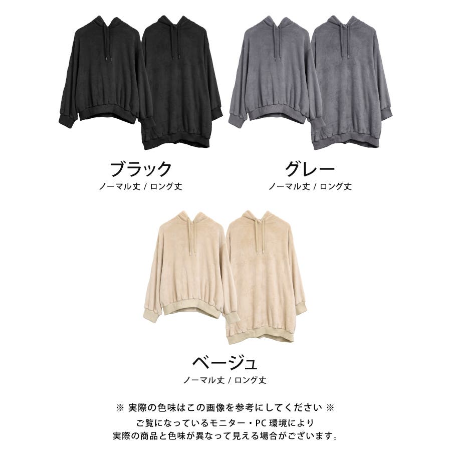 ボアパーカー 裏起毛スウェット レディース 秋 冬 選べる 2丈 ノーマル ロング 長袖 プルオーバー 無地 カジュアル シンプル リラックス リラクシング ルームウェア 部屋着 テレワーク リモートワーク コンパクト スエット レイヤード 重ね着 フード付きパーカー フードパーカ フーディー 着る毛布