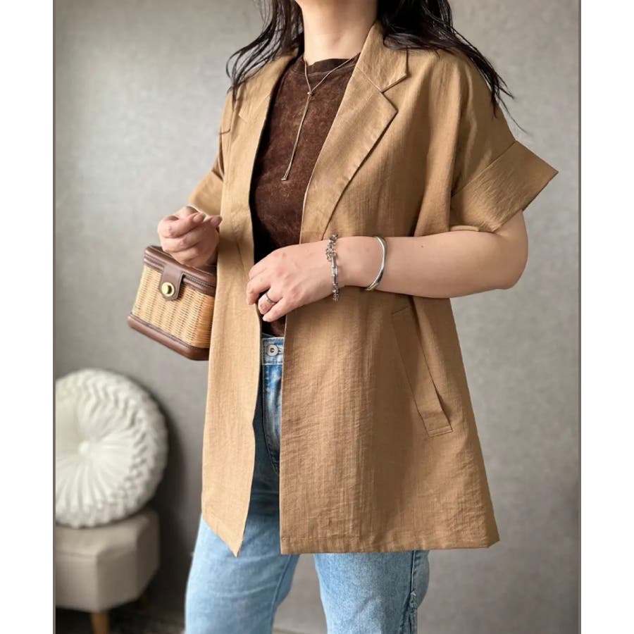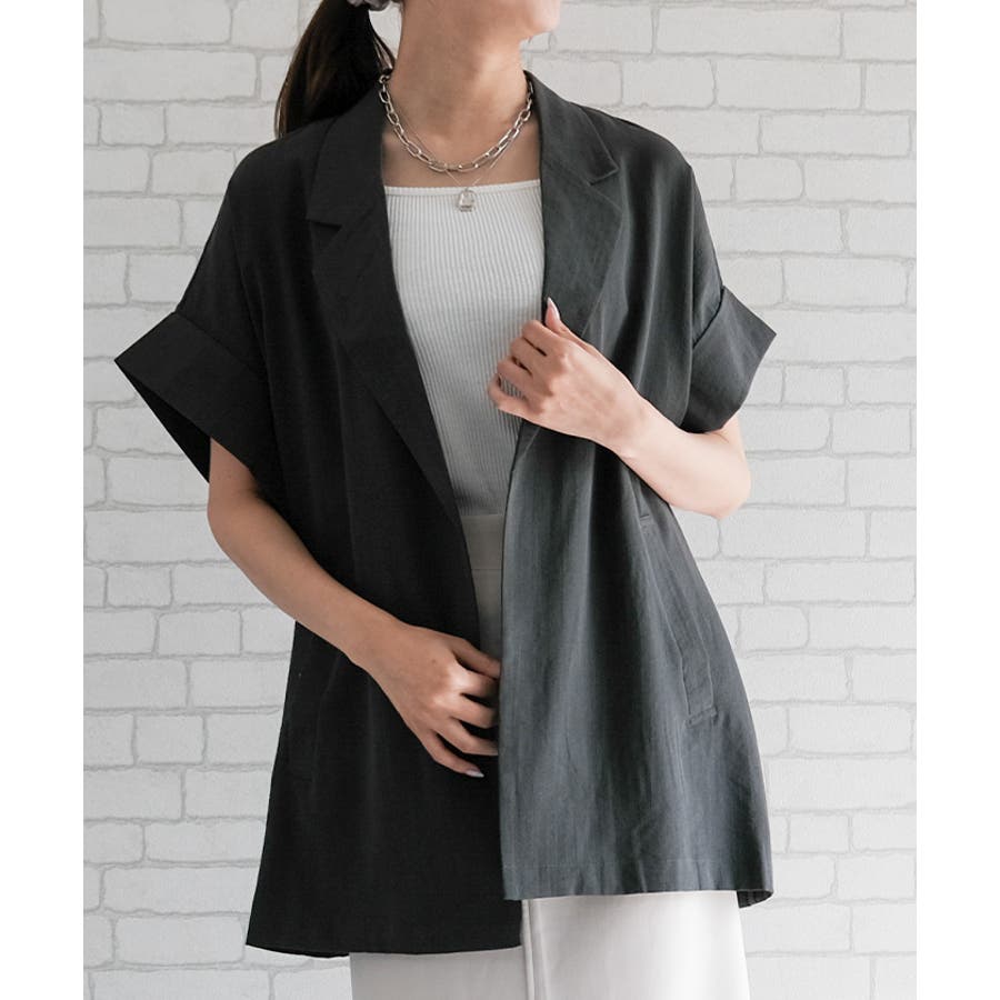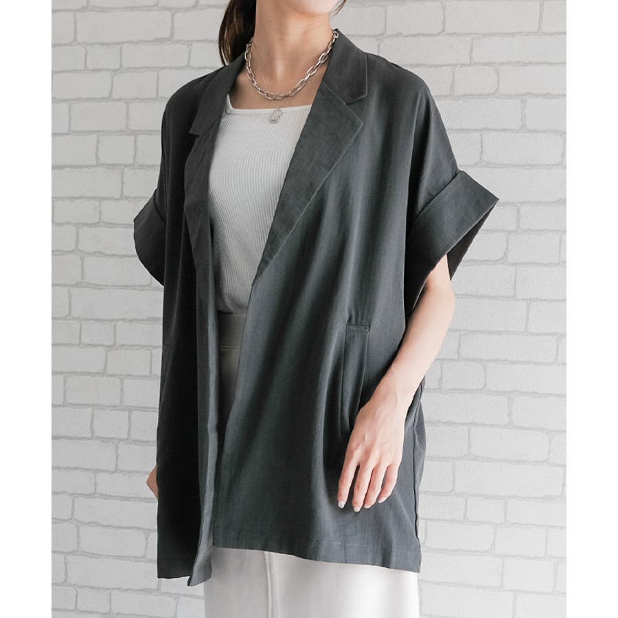 半袖ジャケット 無地 カジュアル リネンタッチ リネンブレンドジャケット ジャケット レディース 春 夏 秋 半袖 シャツジャケット シンプル アウター 羽織り ライトアウター 前開き 二の腕カバー 体型カバー ゆったり 軽量 薄手 細見え リラックス リラクシング 美ライン リゾート 海 レジャー