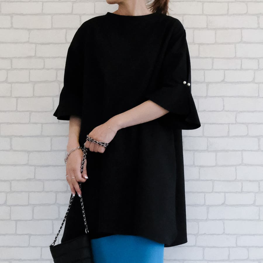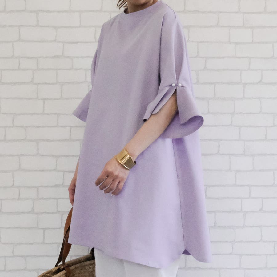 袖に施したパールがかわいい袖パール付きフレアチュニック