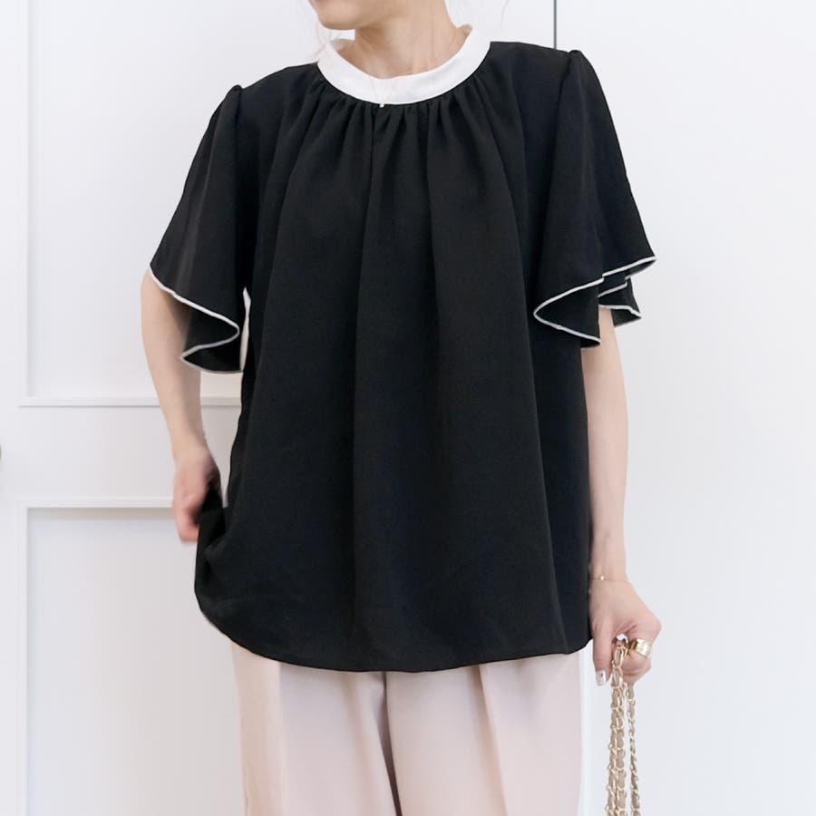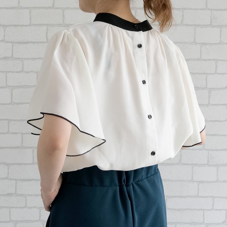 ふわりと揺れるフレア袖が上品な魅力を引き立てる!バイカラーフレア袖ブラウス