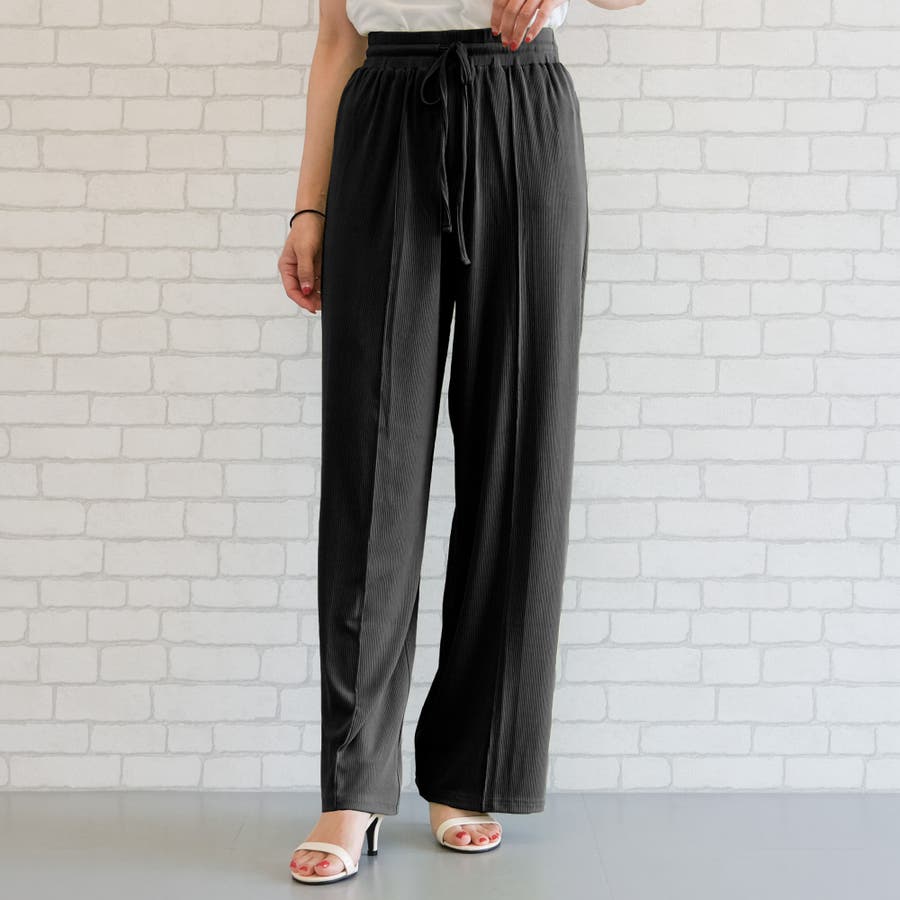 どんなトップスとも合わせやすい!リブカットソーリラックスドロストパンツ