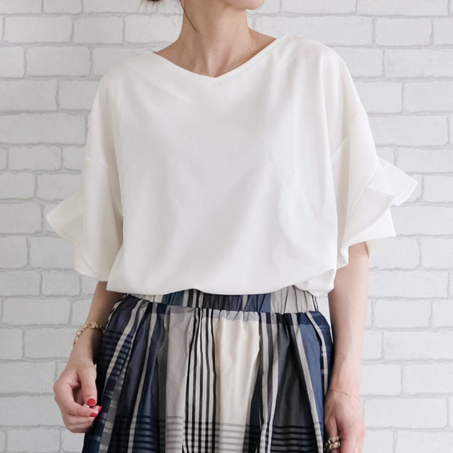 袖にフリルがありますが、無地でシンプルなため子供っぽくなく大人可愛いと思います。