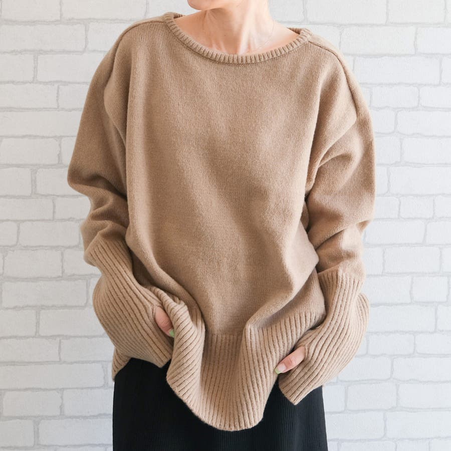 アームウォーマー風ボートネックニット ニット トップス レディース 春 秋 冬 長袖 おしゃれ 厚手 ゆったり ルームウェア ワンマイルウェア 部屋着 ショート丈 コンパクト レイヤード バルーン袖 バルーンスリーブ ボリューム袖 ボリュームスリーブ ぽわん袖 ポワン袖 ふんわり袖 パフスリーブ 袖コンシャス