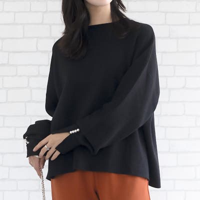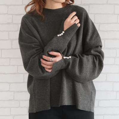 袖口にあしらったパールデザインが上品さを演出!袖パールデザインニット