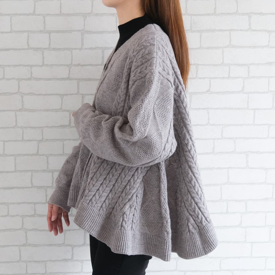 Aラインフレアニットカーディガン カーディガン レディース 春 秋 冬 長袖 プルオーバー ゆったり 楽ちん カジュアル おしゃれ 羽織 前開き ライトアウター ルームウェア ワンマイルウェア 部屋着 オーバーサイズ ケーブル編み