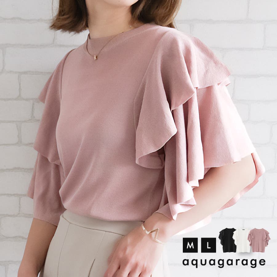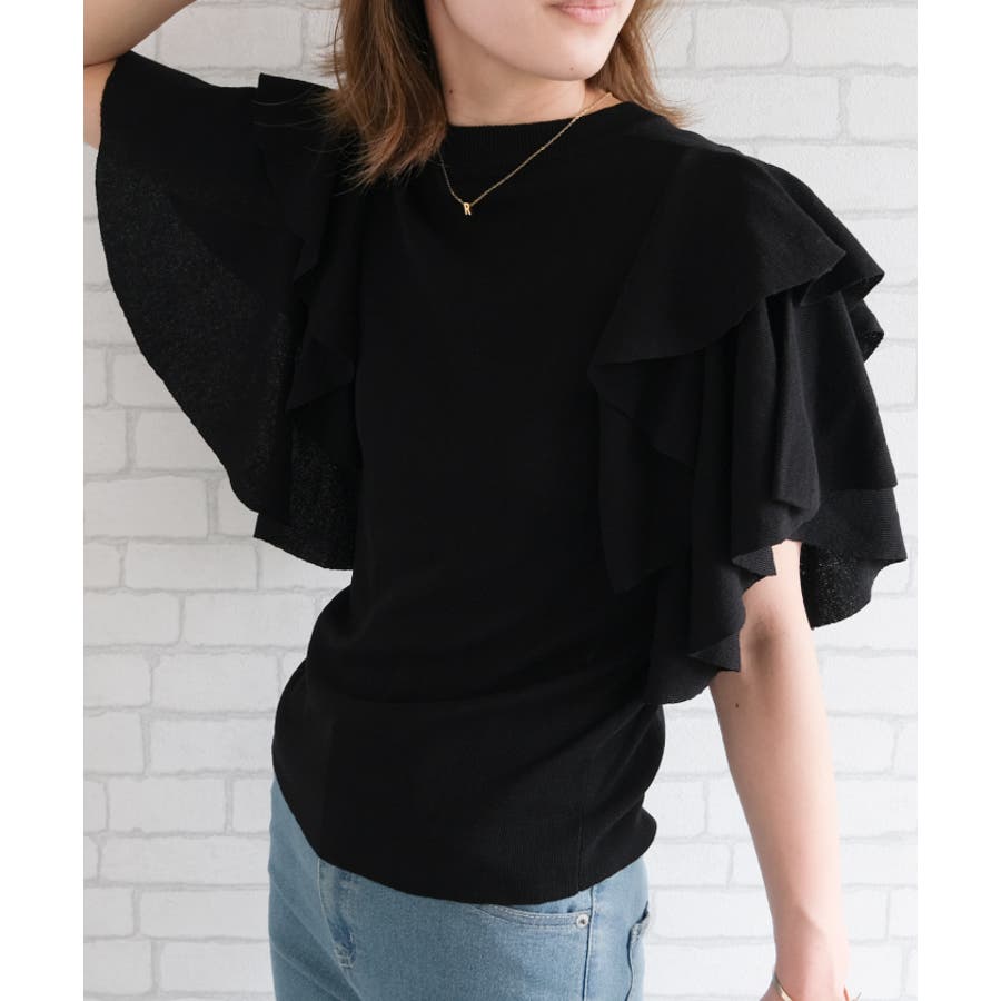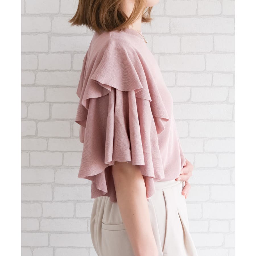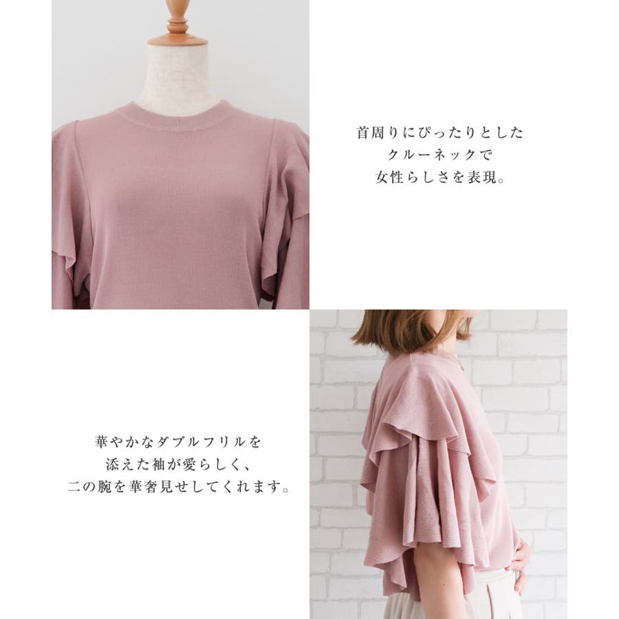主役級の華やかさ!二の腕もカバーしてくれるダブルフリルスリーブニット