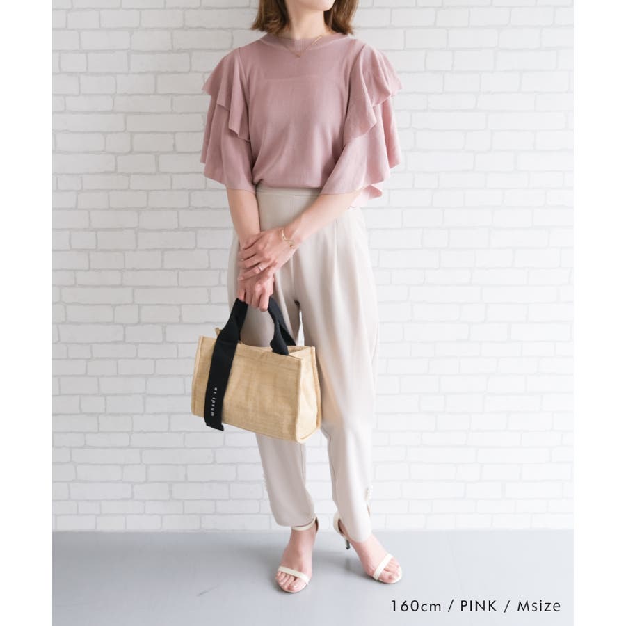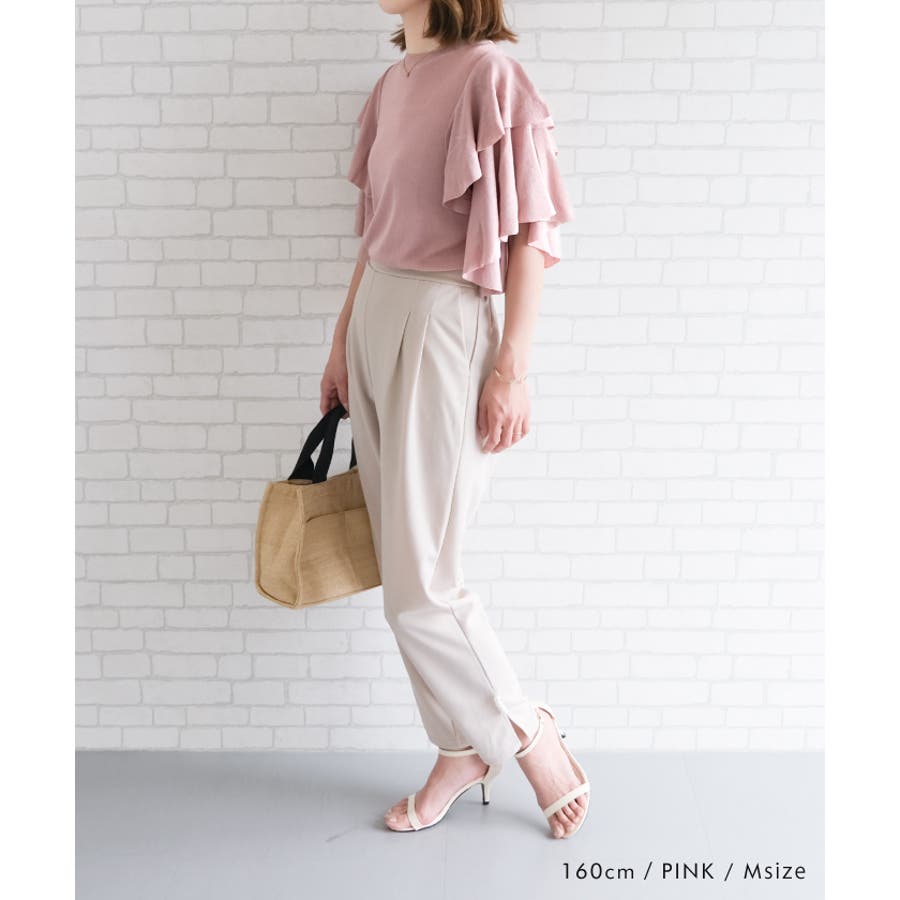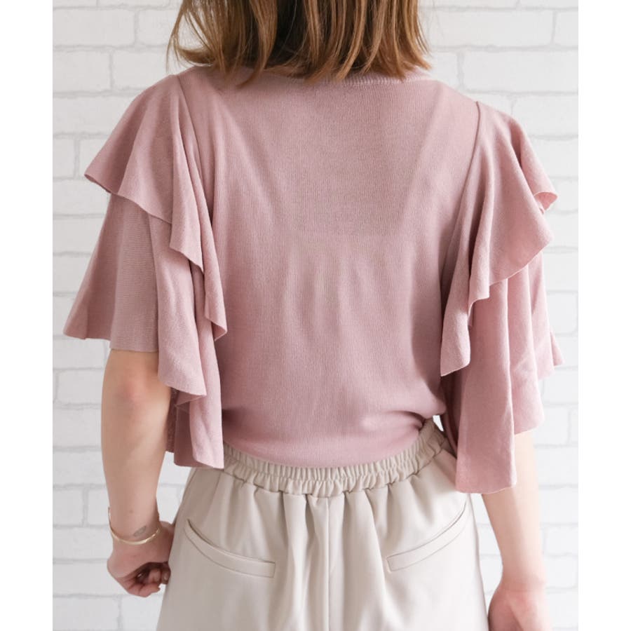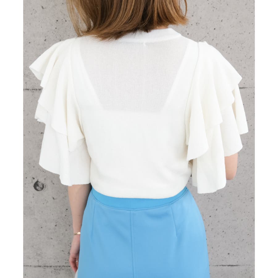 可愛いだけでなく、二の腕もカバーしてくれるダブルフリルスリーブサマーニット