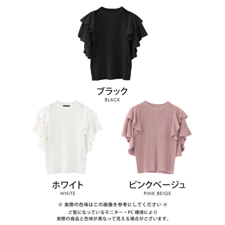 ダブルフリルスリーブニットトップス フリルスリーブ トップス レディース 半袖 シンプル 無地 春 夏 トップス レディース 春 夏 M L 半袖 ニットソー プルオーバー 体型カバー 無地 カジュアル シンプル 華奢見せ ゆったり リラックス リラクシング クルーネック 薄手 フリル袖 サマーニット
