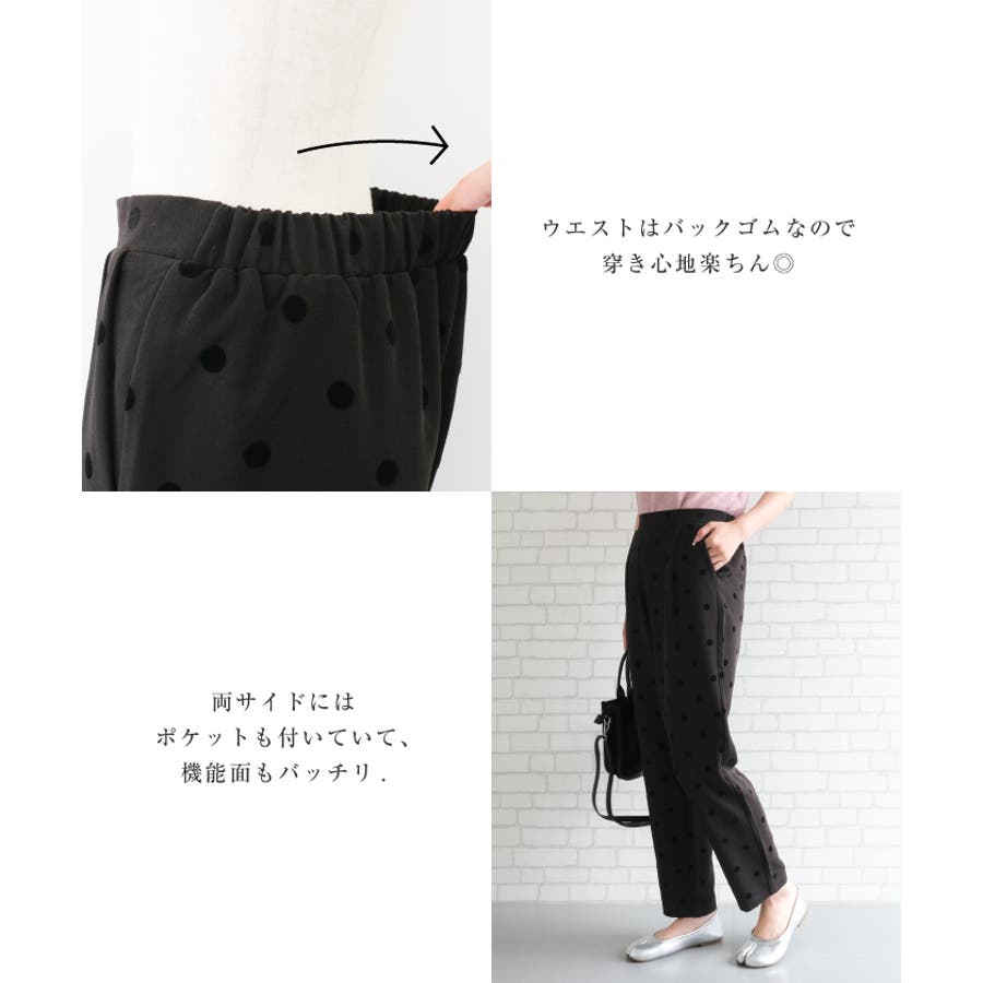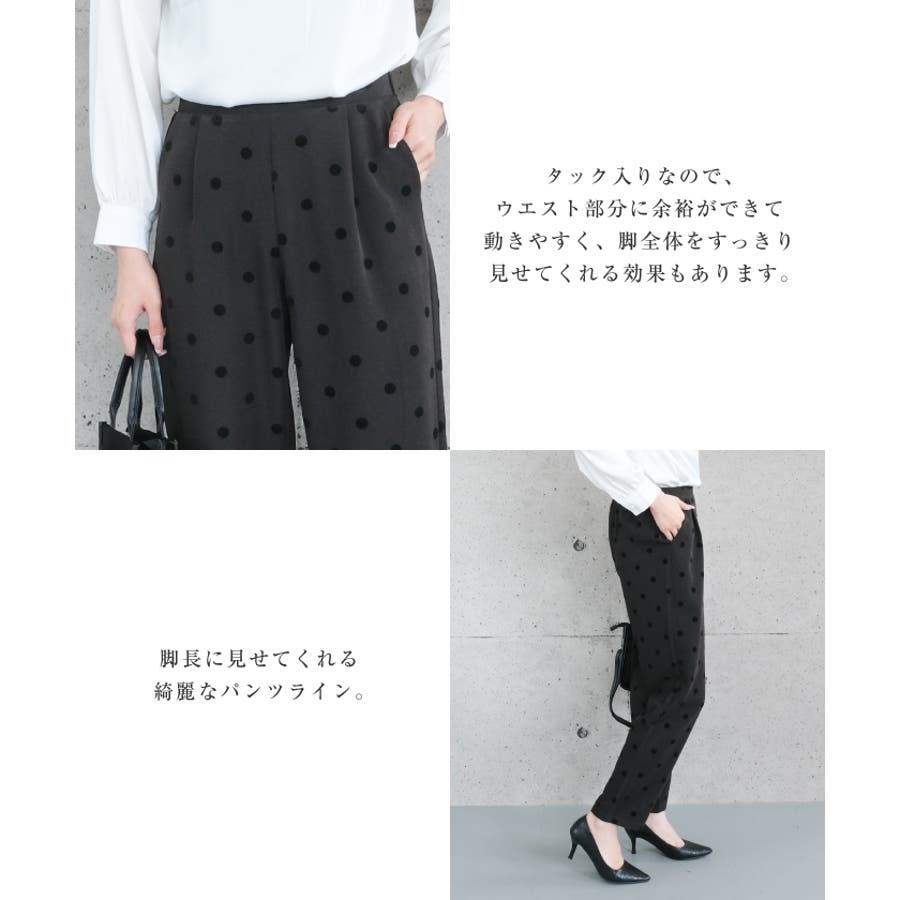 ドット柄テーパードパンツ レディース M MT L LL ロング丈 ビジネス オフィスウェア 通勤 上品 きれいめ パーティー 二次会 フォーマル セレモニー お呼ばれ 入園式 卒園式 入学式 卒業式 謝恩会 演奏会 発表会 授業参観 面談 お受験 保護者会 謝恩会 お食事会 七五三 お宮参り ママスーツ リラックス ルームウェア 部屋着 テレワーク リモートワーク 小さいサイズ 大きいサイズ シンプル
