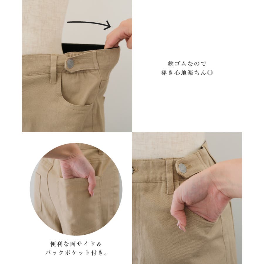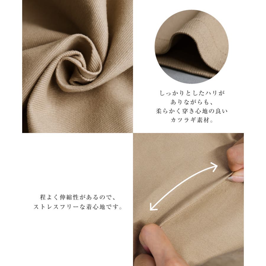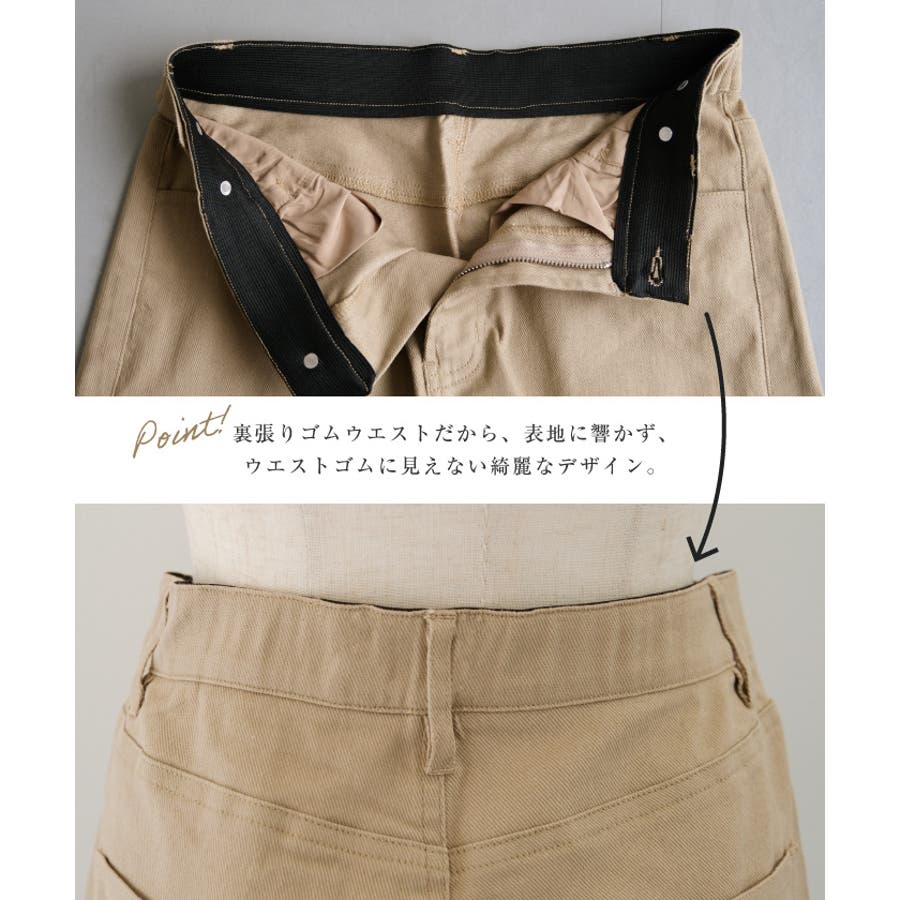 裏張りゴムウエストだから、表地に響かず、ウエストゴムに見えない綺麗なデザイン。