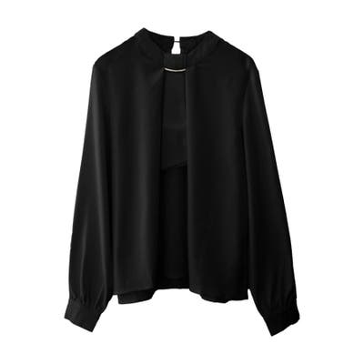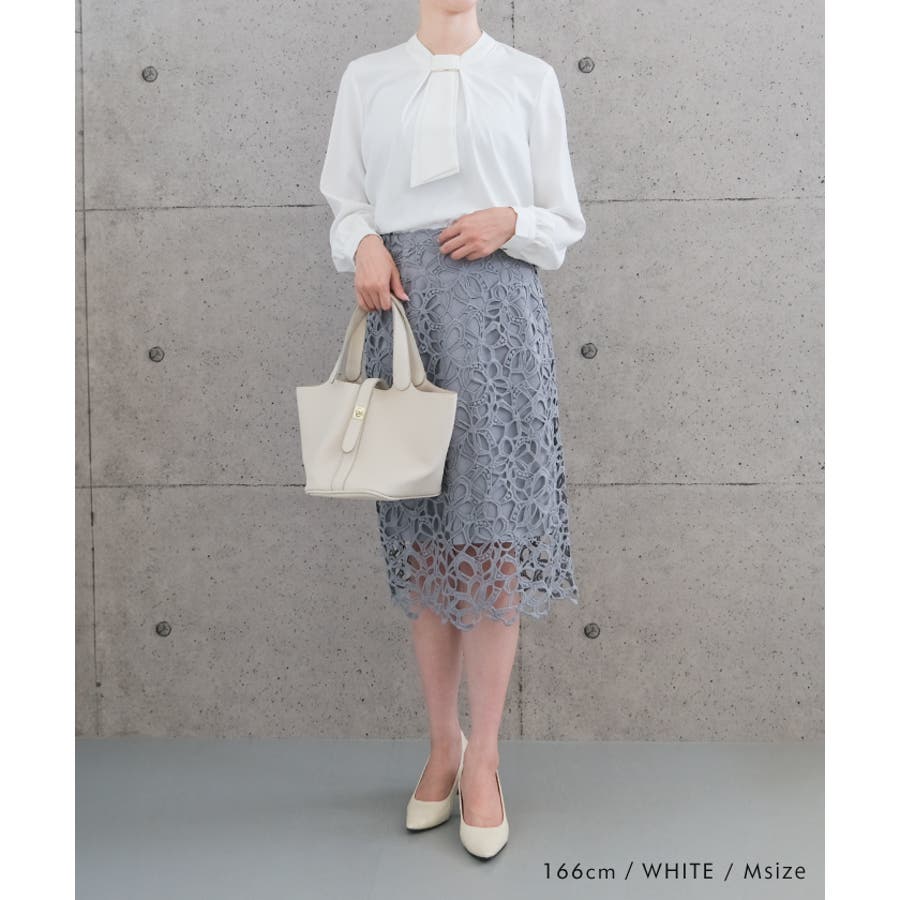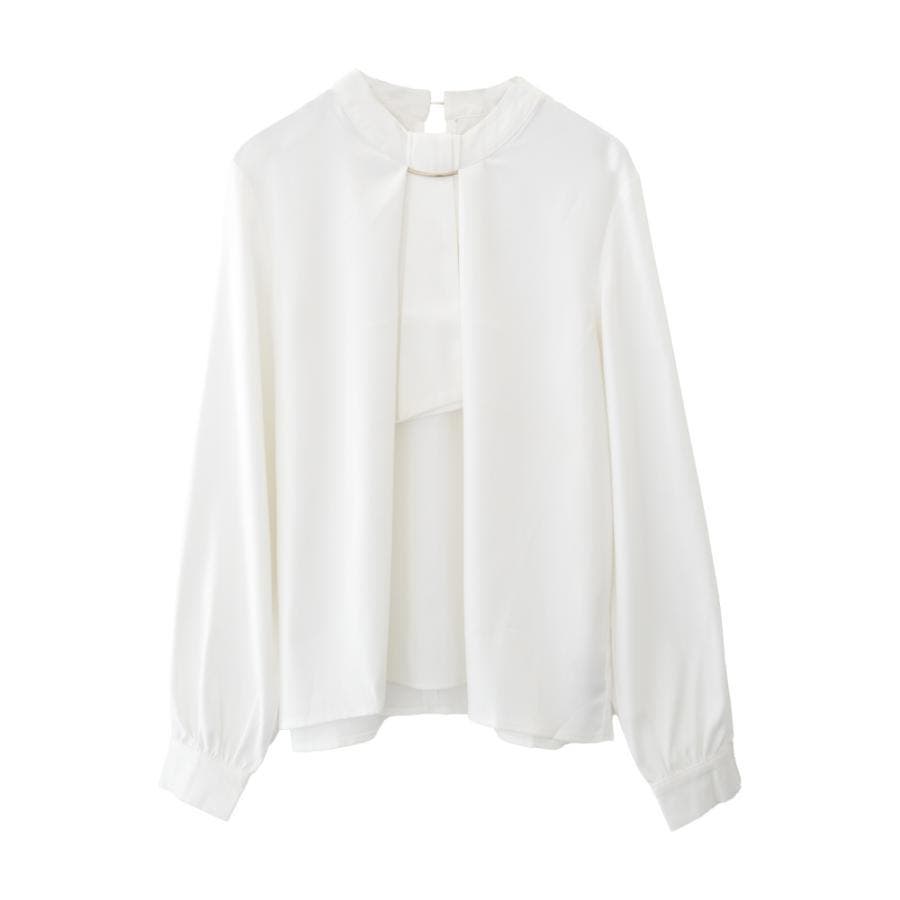 上品な印象のチャーム付きボウタイブラウス
