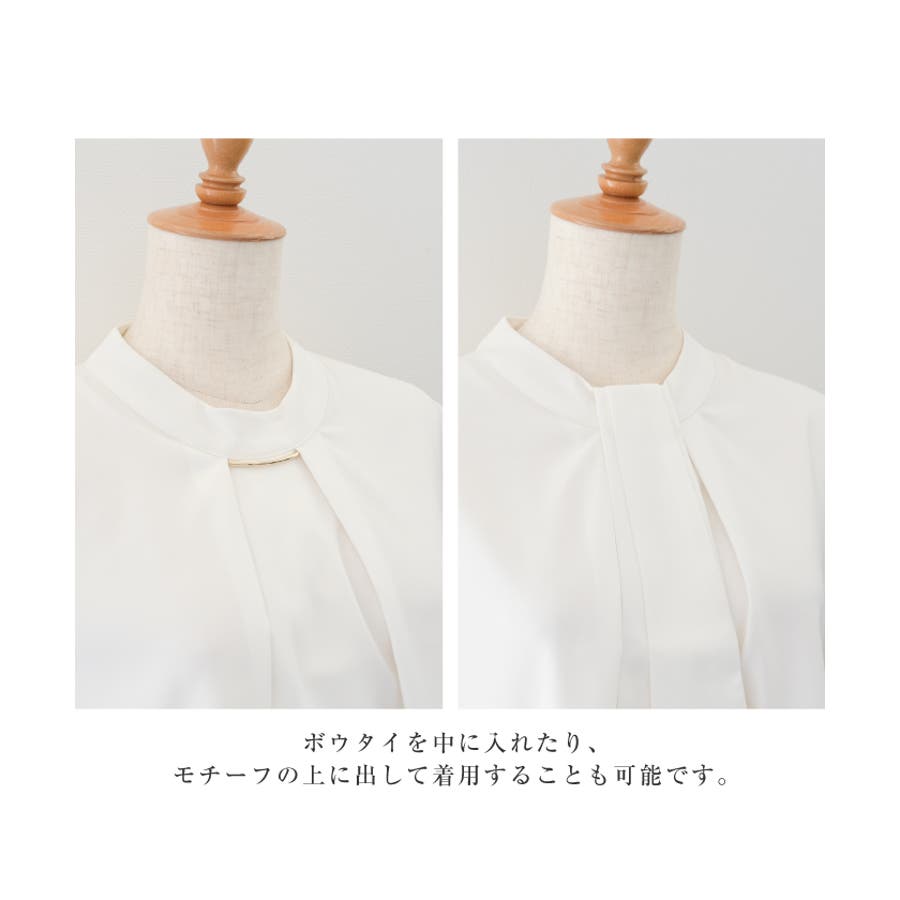 チャーム付きボウタイブラウス ブラウス トップス シャツ レディース Vネック ノーカラー ボウタイ リボン 袖コンシャス フリル袖 フリルスリーブ 春 夏 M L 二の腕カバー シンプル ベーシック きれいめ フォーマル セレモニー フェミニン クラシック エレガント ビジネス オフィスウェア オフィスカジュアル 通勤 上品 清楚 入園式 卒園式 入学式 卒業式 薄手