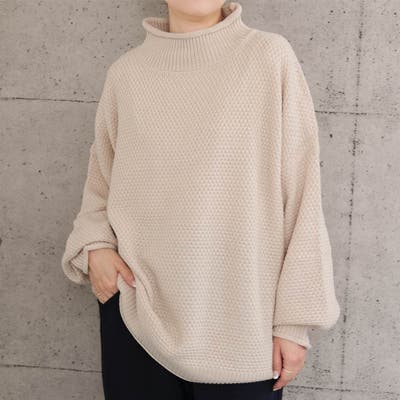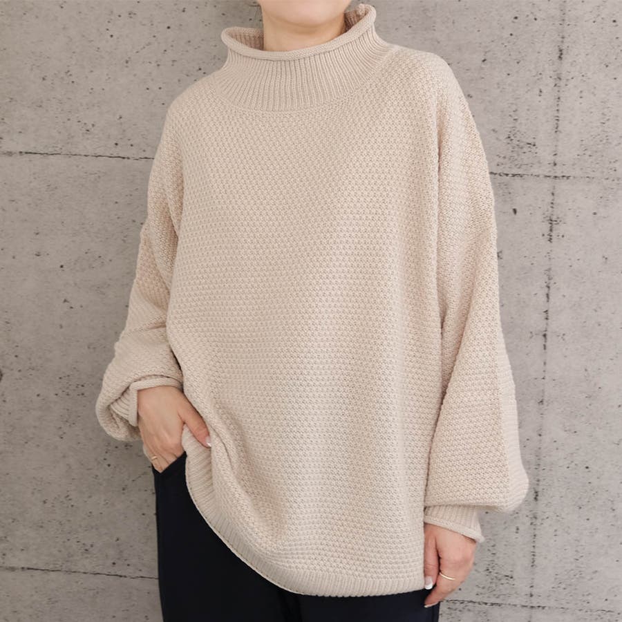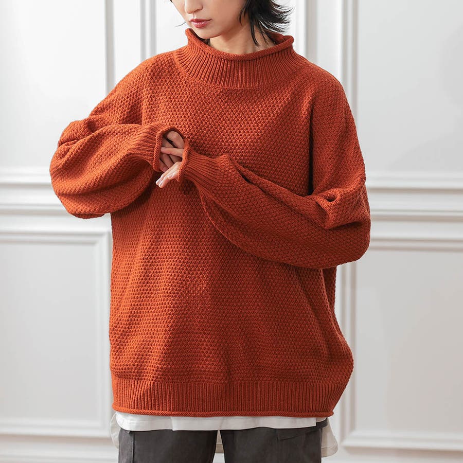 鹿の子編みハイネックニット レディース 春 秋 冬