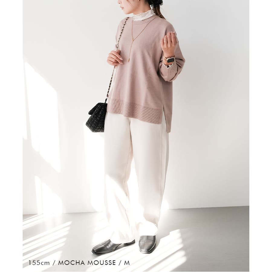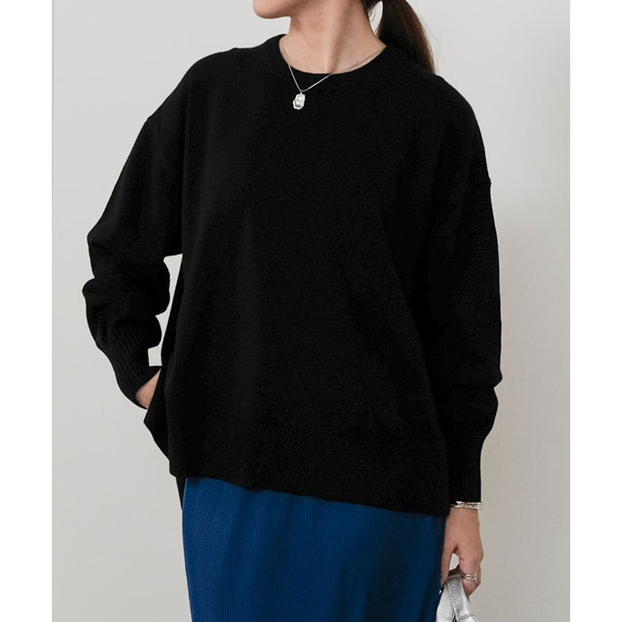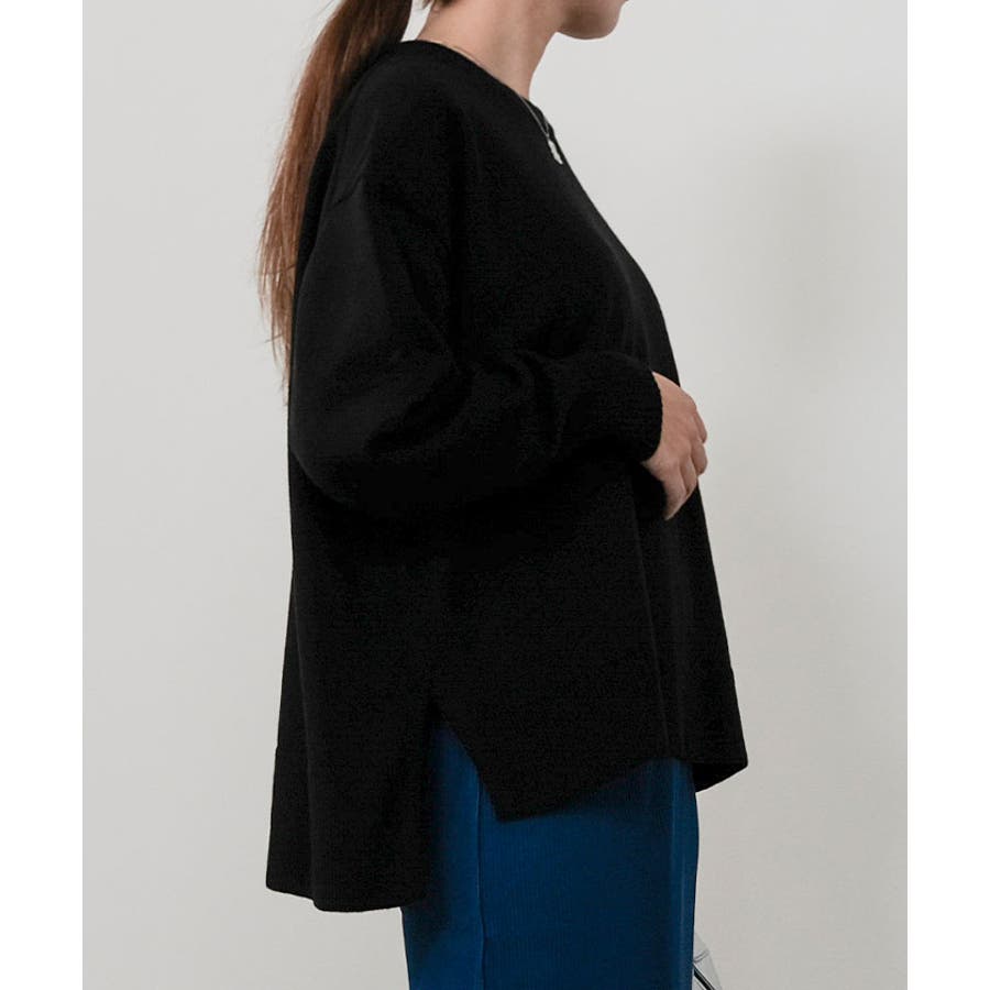 ゆったりとした落ち感が魅力の、サイドスリット入りニットプルオーバー。