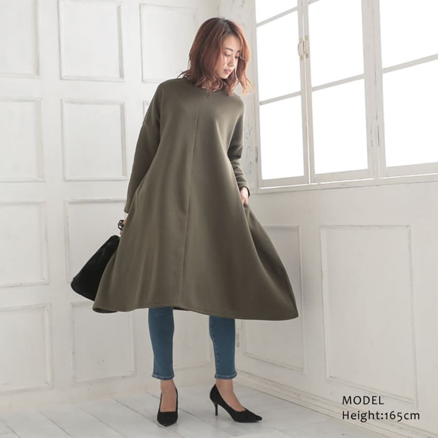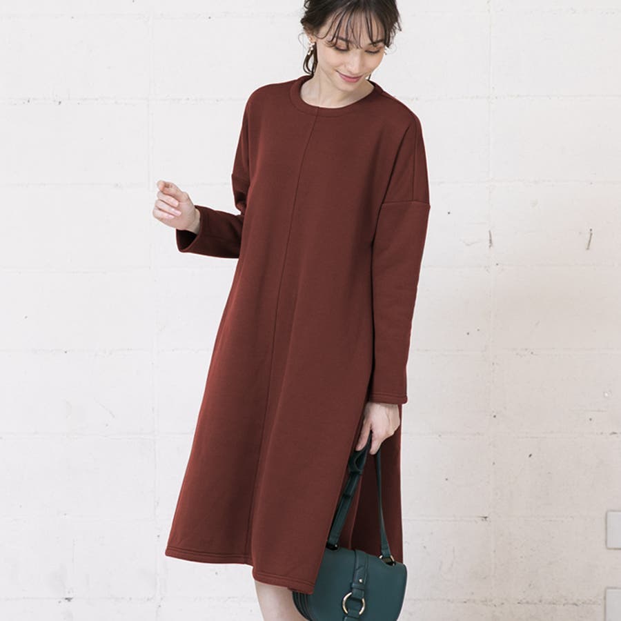秋冬にうれしい暖かさ抜群の裏起毛ワンピース。