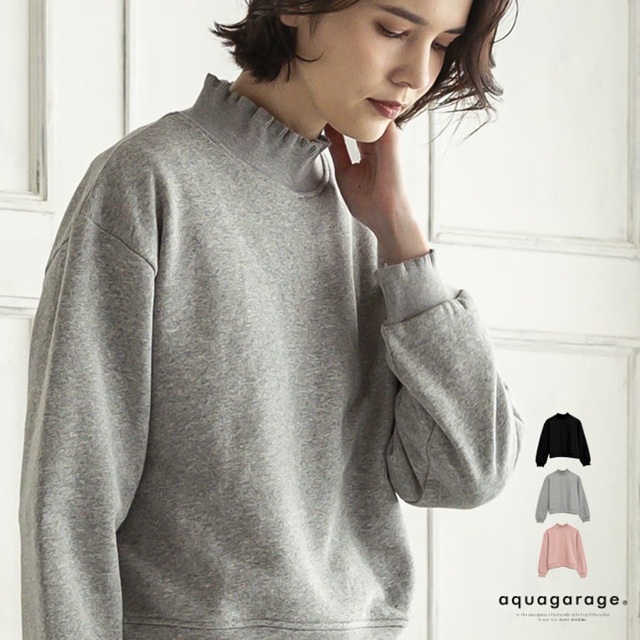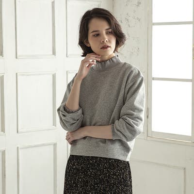 リブとフリルの袖・襟周りが特徴的スウェットトップス。