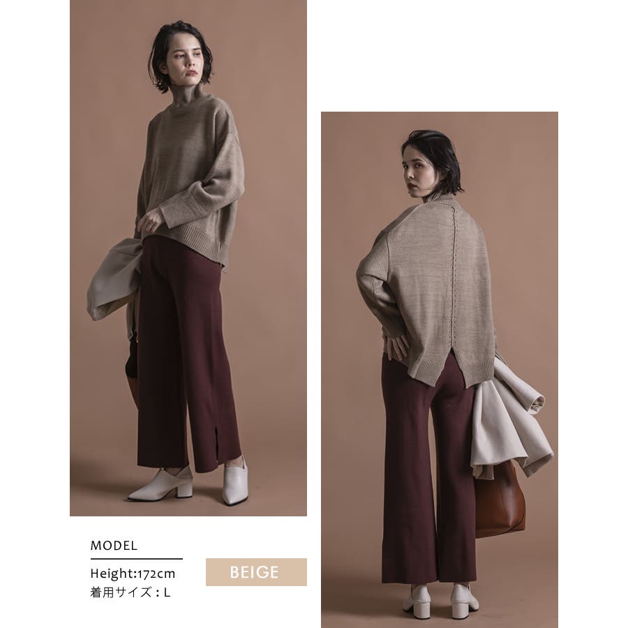 首回りはハイネックで首がほっそり見えて小顔見え効果も◎