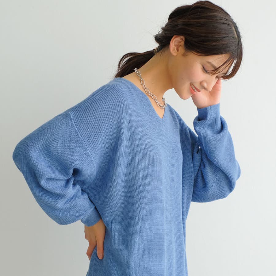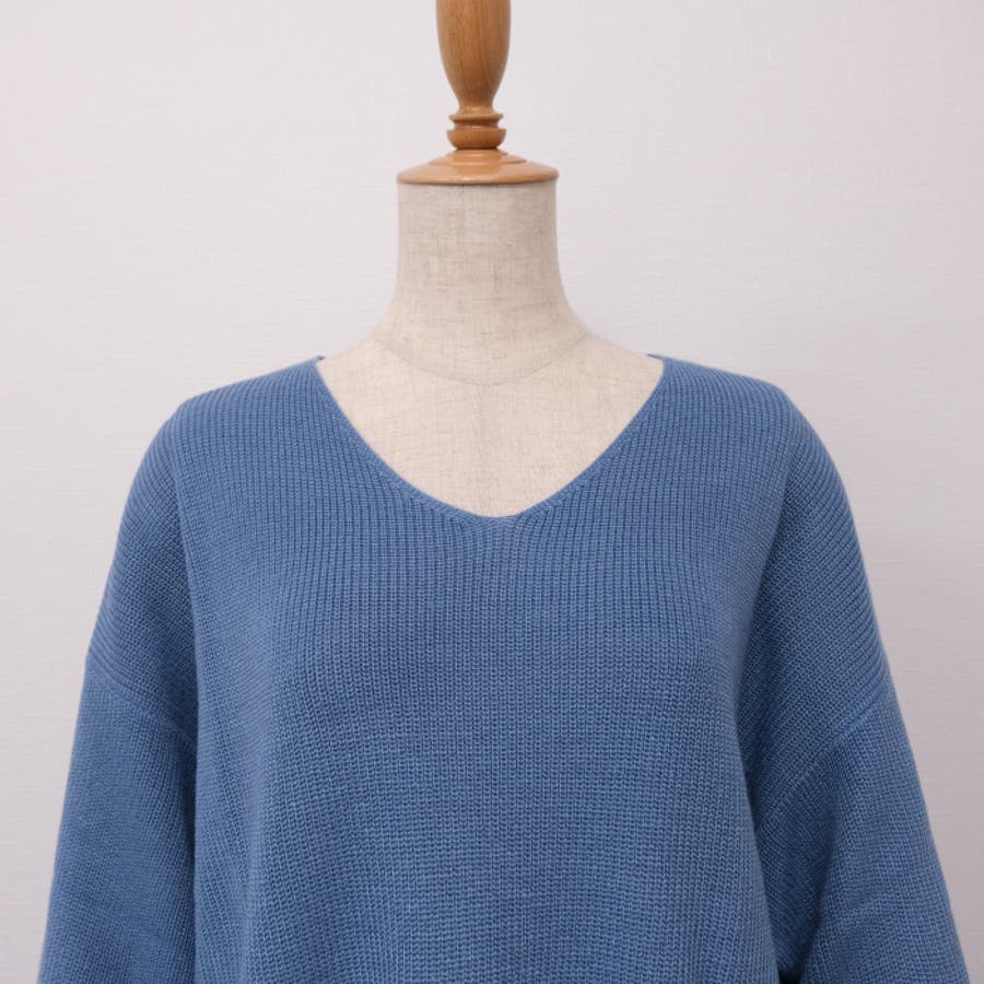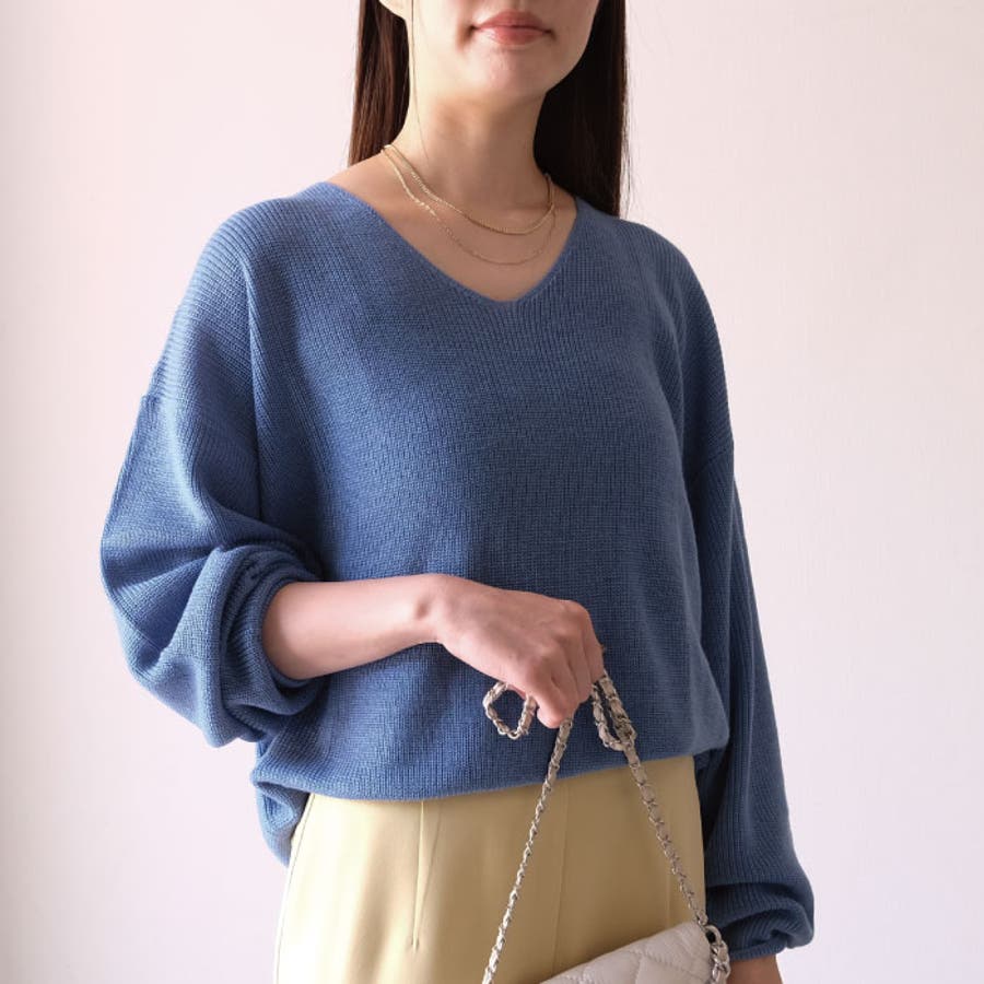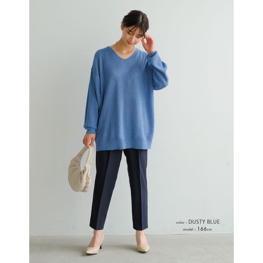 すっきりVネックでデコルテ美人に。あぜ編みオーバーサイズニット
