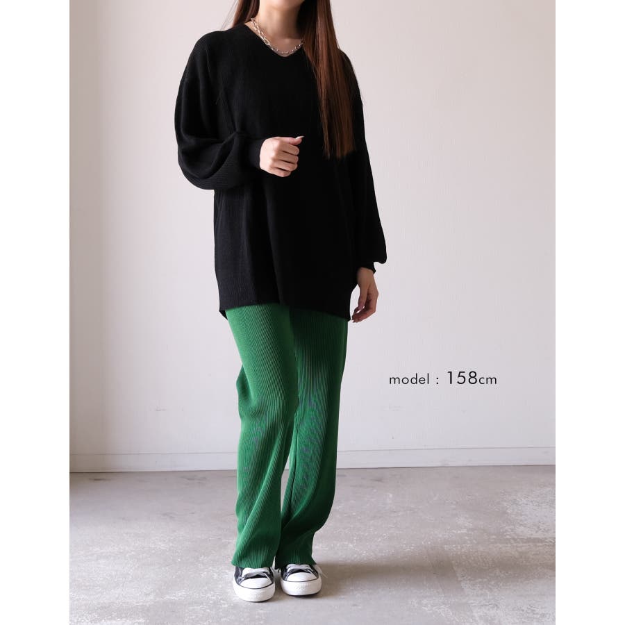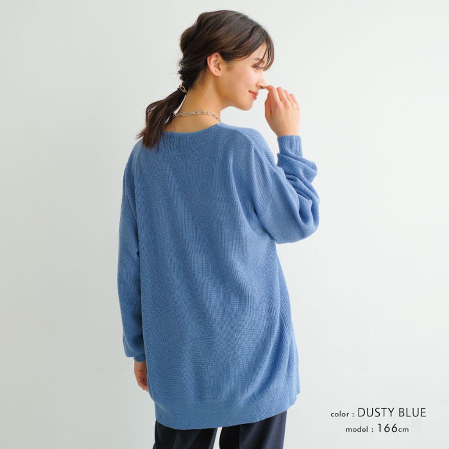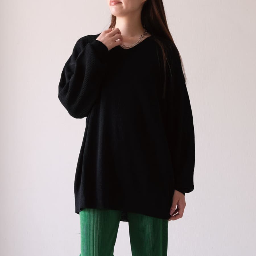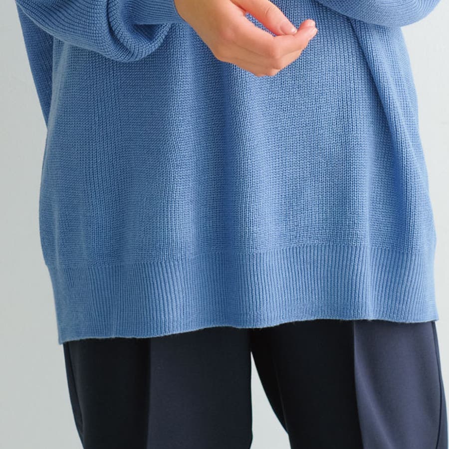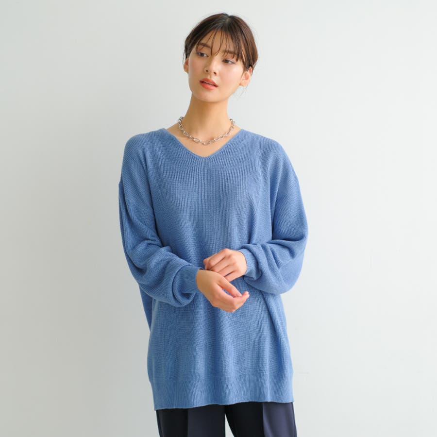 すっきりVネックでデコルテ美人に。あぜ編みオーバーサイズニット