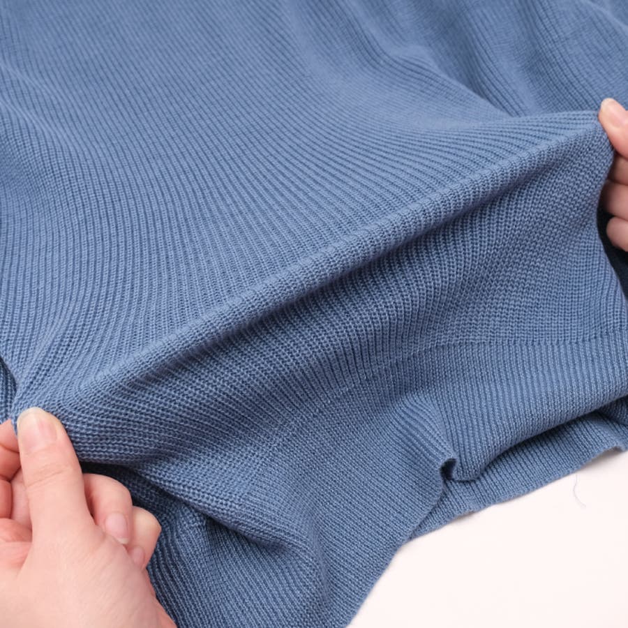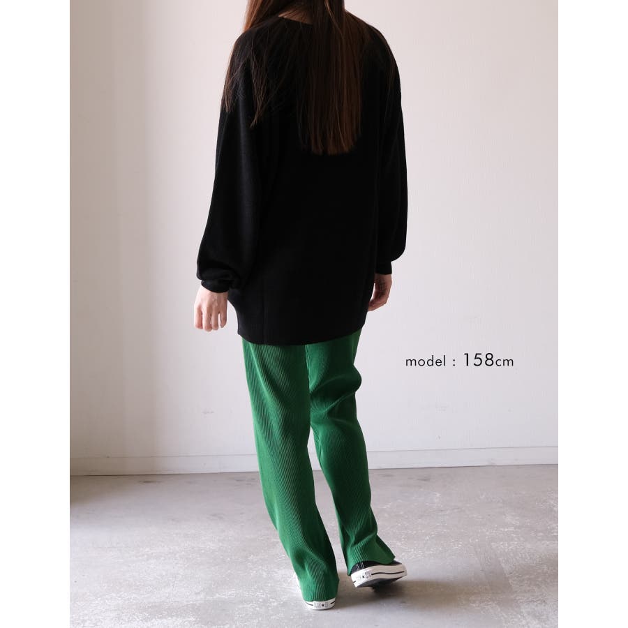 繊細な薄手の編地で、しなやかな風合いが女性らしい一枚。