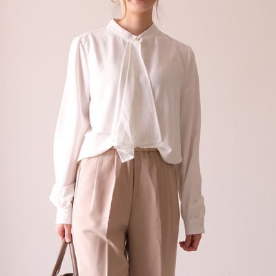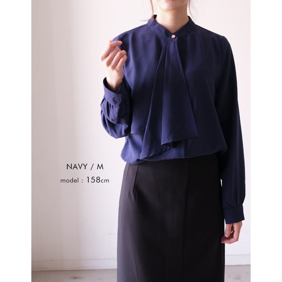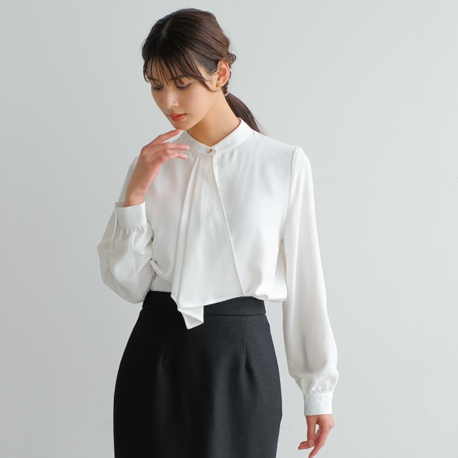 凛とした印象と甘さのバランスが絶妙なスカーフタイブラウス