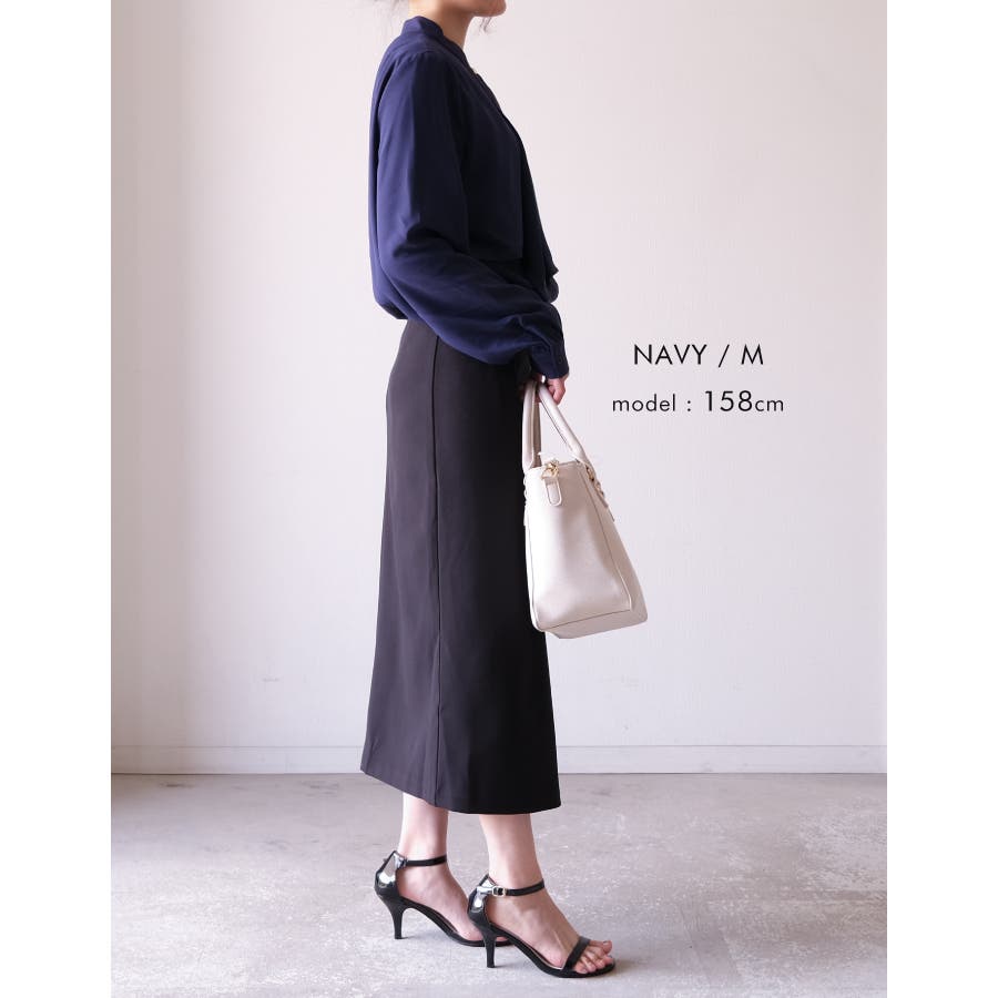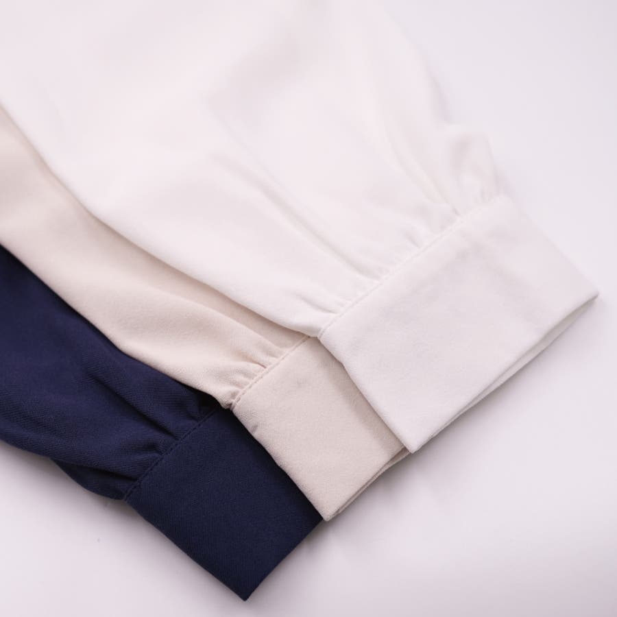 胸元がドレープデザインの着る人を上品に演出するブラウス。
